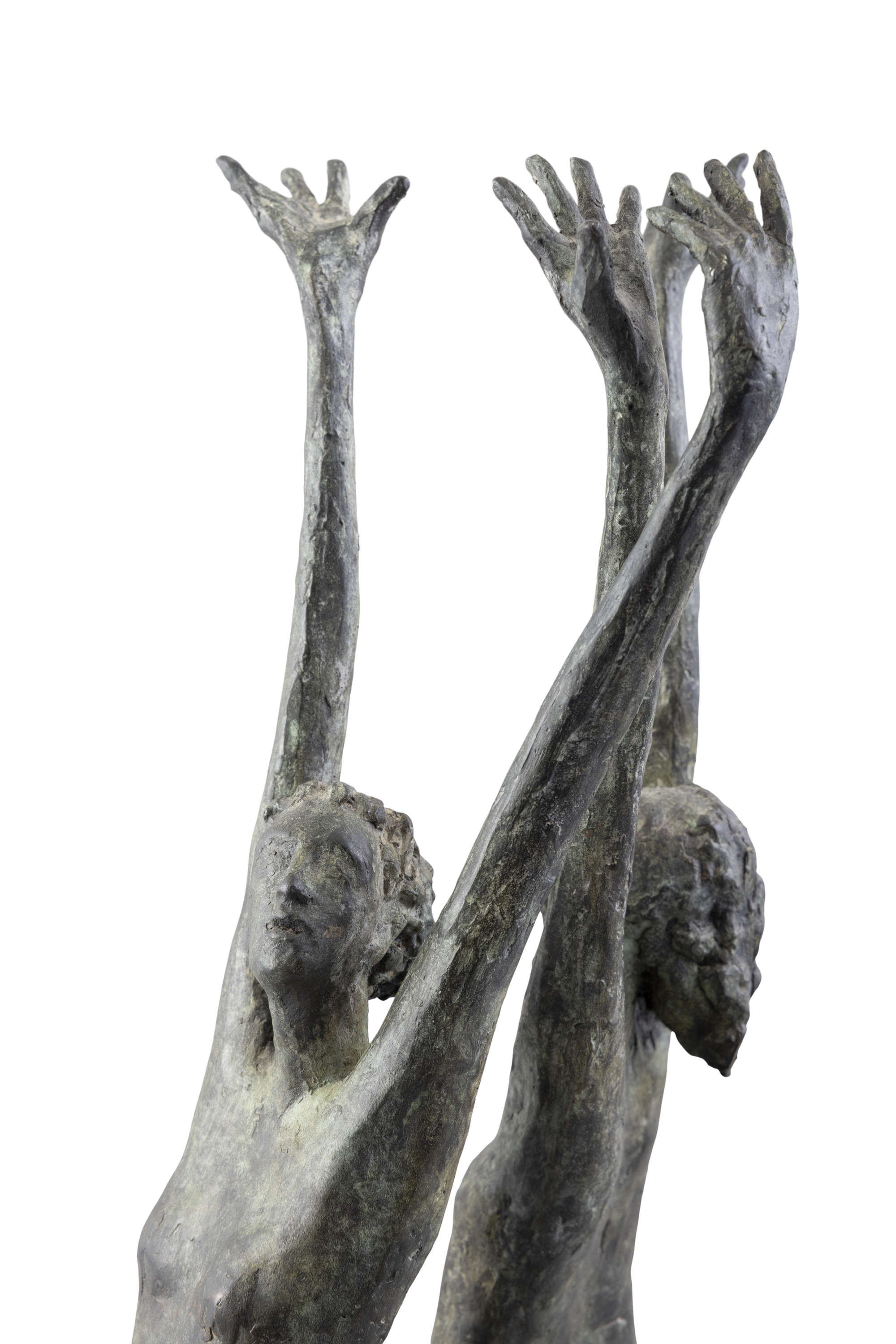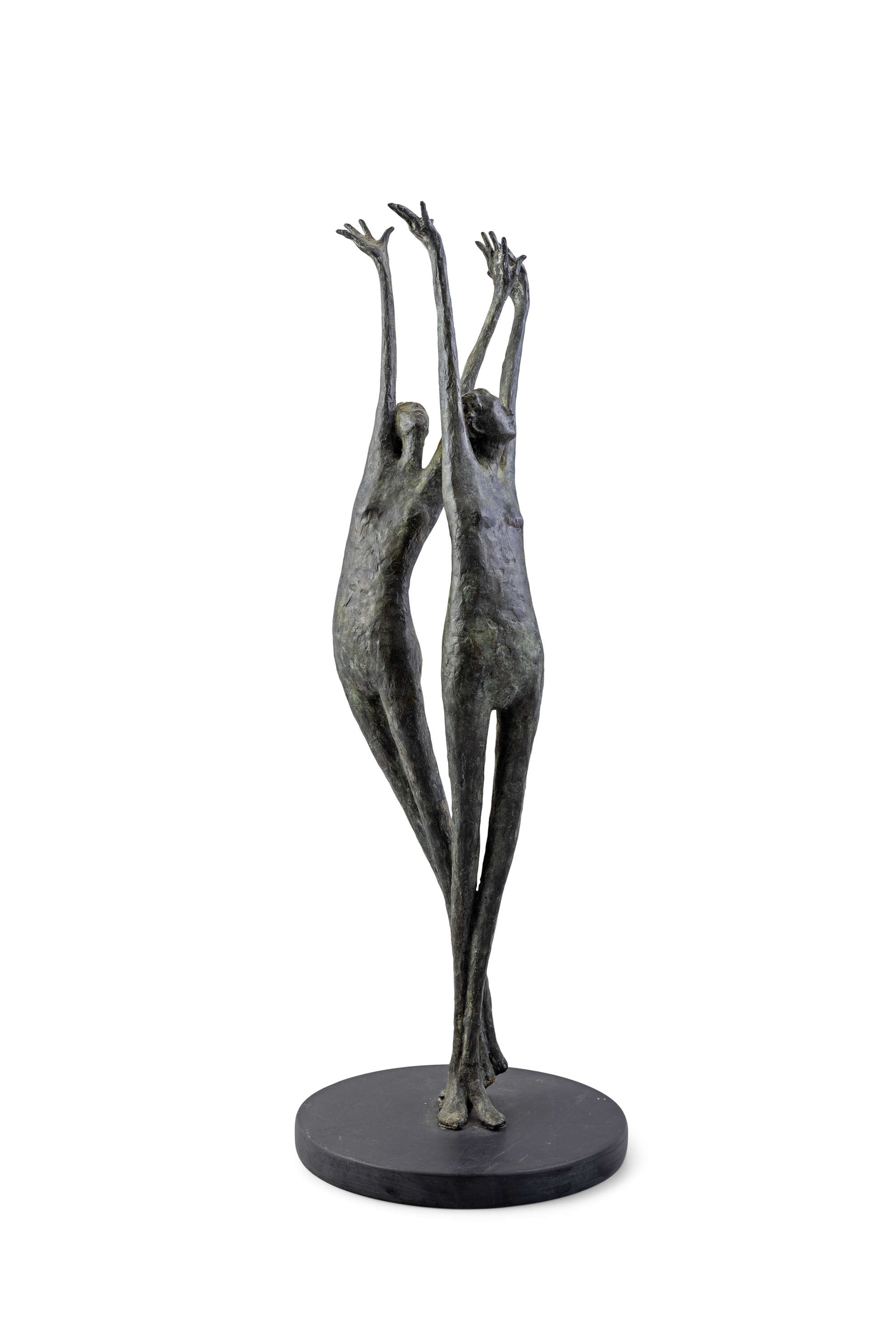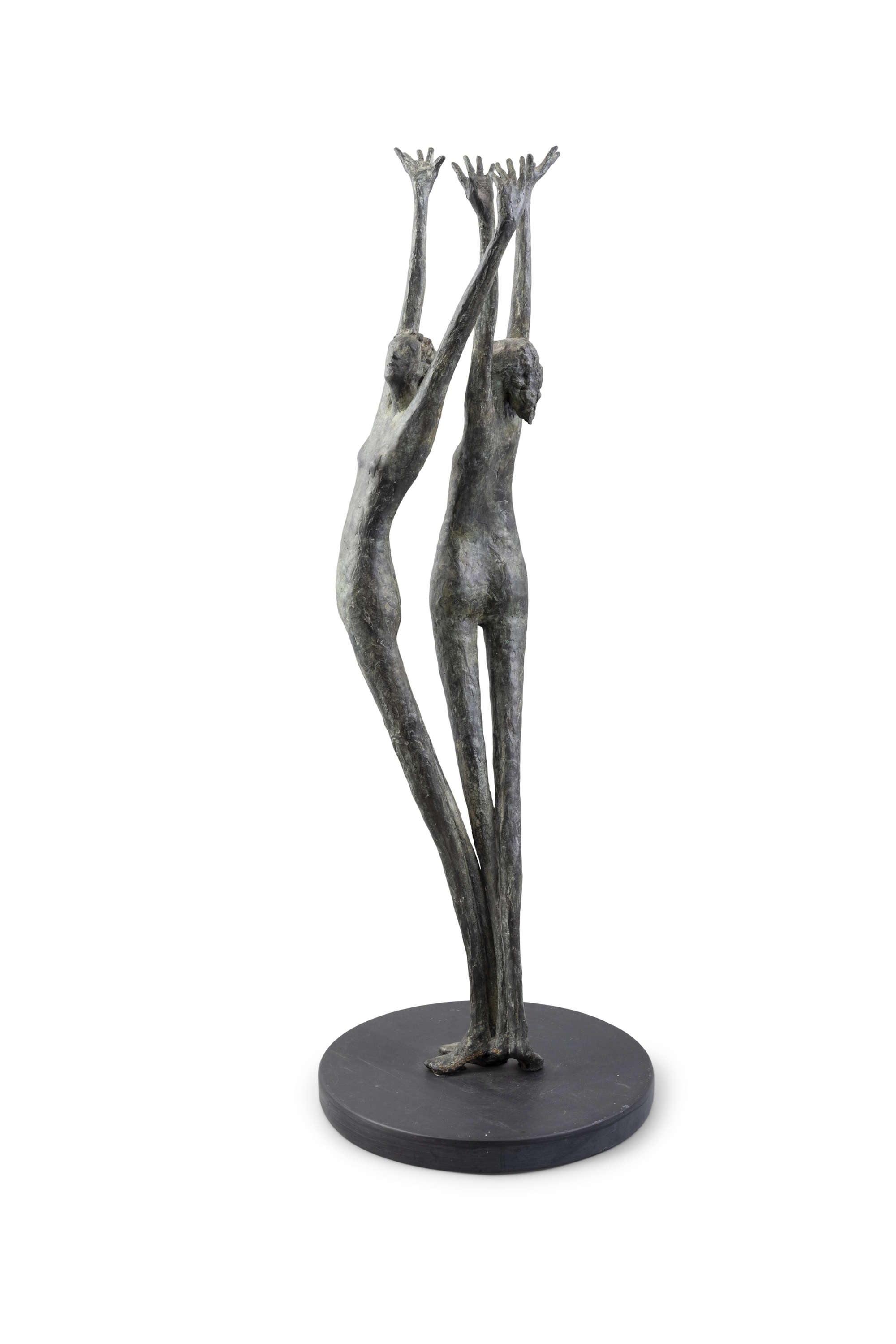 There is a visual link between the outstretched arms in Peace II and the Blackrock Dolmen (1987), although on this occasion the figures are not supporting the heavy weight of the stone. Instead with their arms outstretched, reaching upwards towards an imaginary light, one is reminded of his respective large-scale public commissions in Italy and Dublin, Leta della donna (2009) and The Age of Freedom (1992). On both occasions the figures stand, similar to the present work, naked, offering some form of thanksgiving to the sun. The two figures in Peace II, seem to grow upwards from the same source, their bodies intertwined with one another. It is an expression of gratitude, a gesture of sublimation and hope.