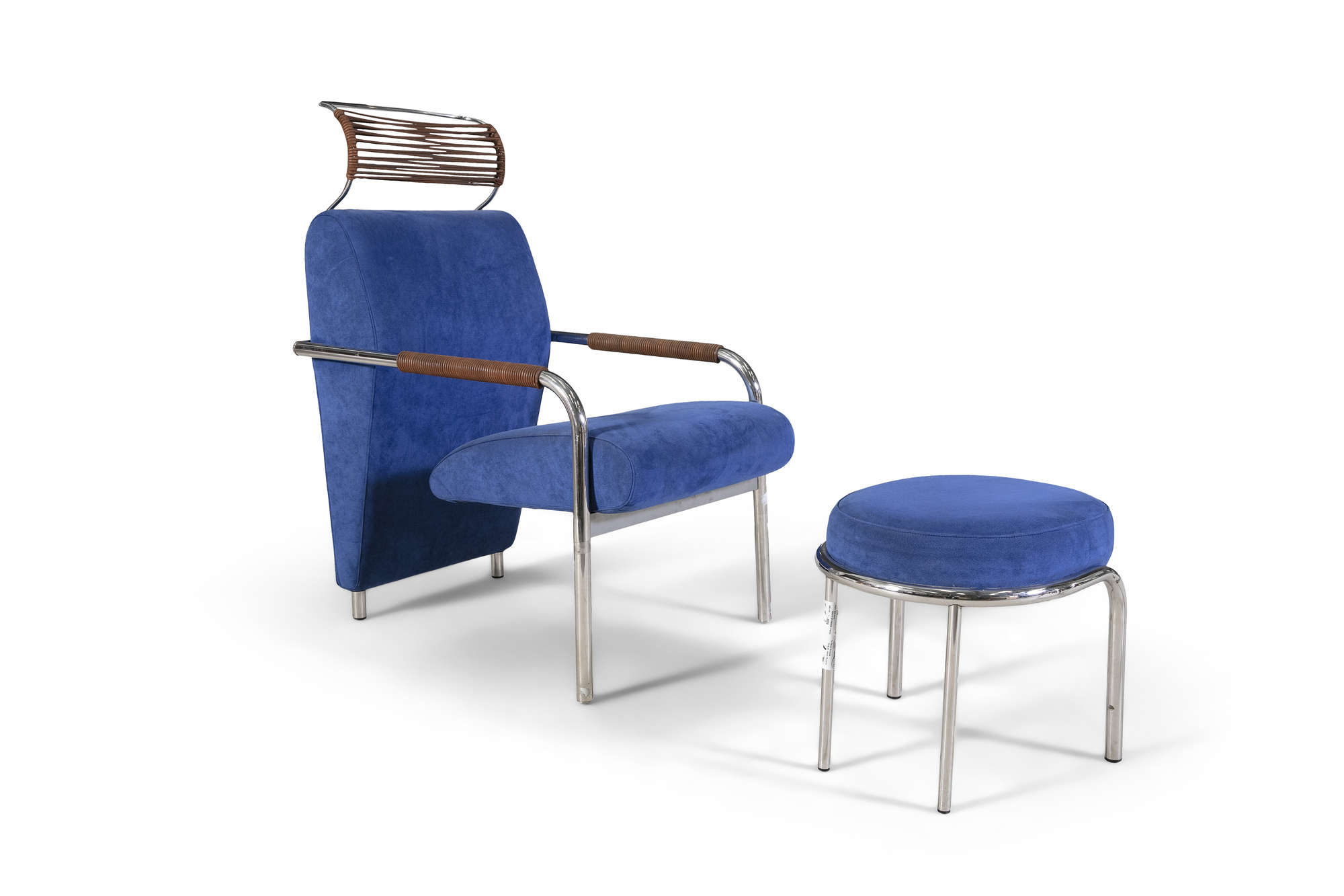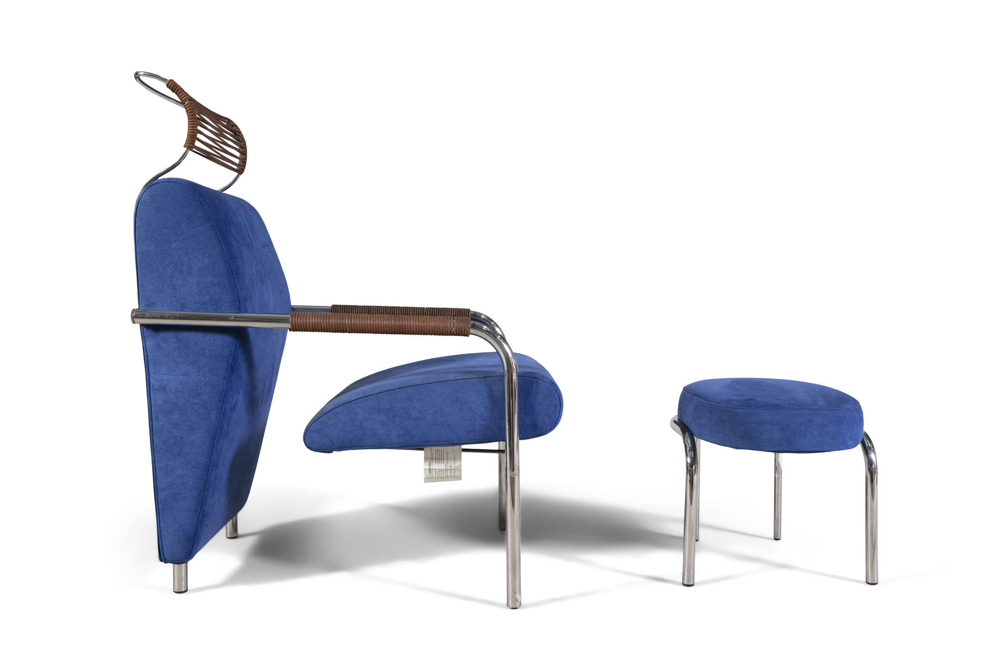 Andrea Branzi designed armchair and ottoman for Zanotta model Nicola, circa 1990, Italy, with makers stamp