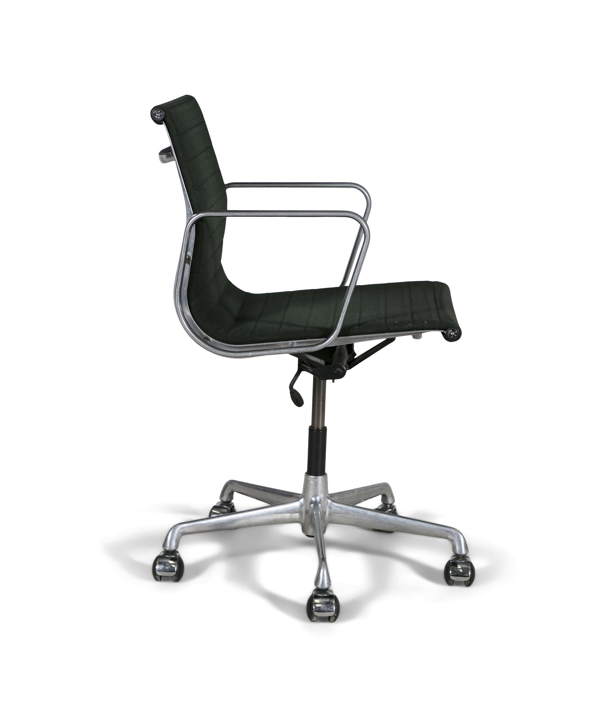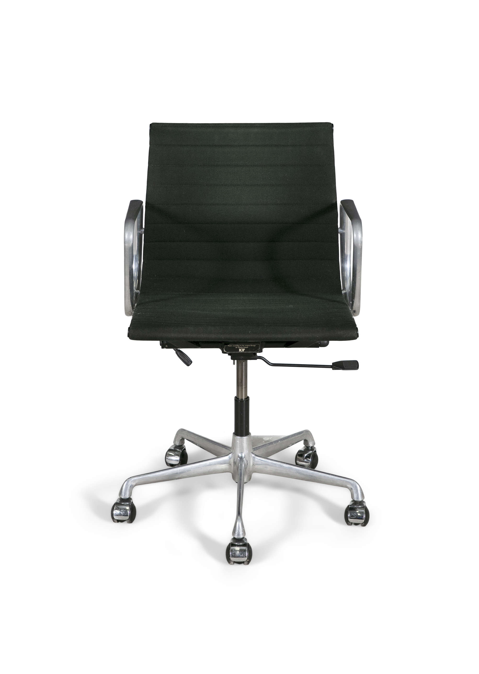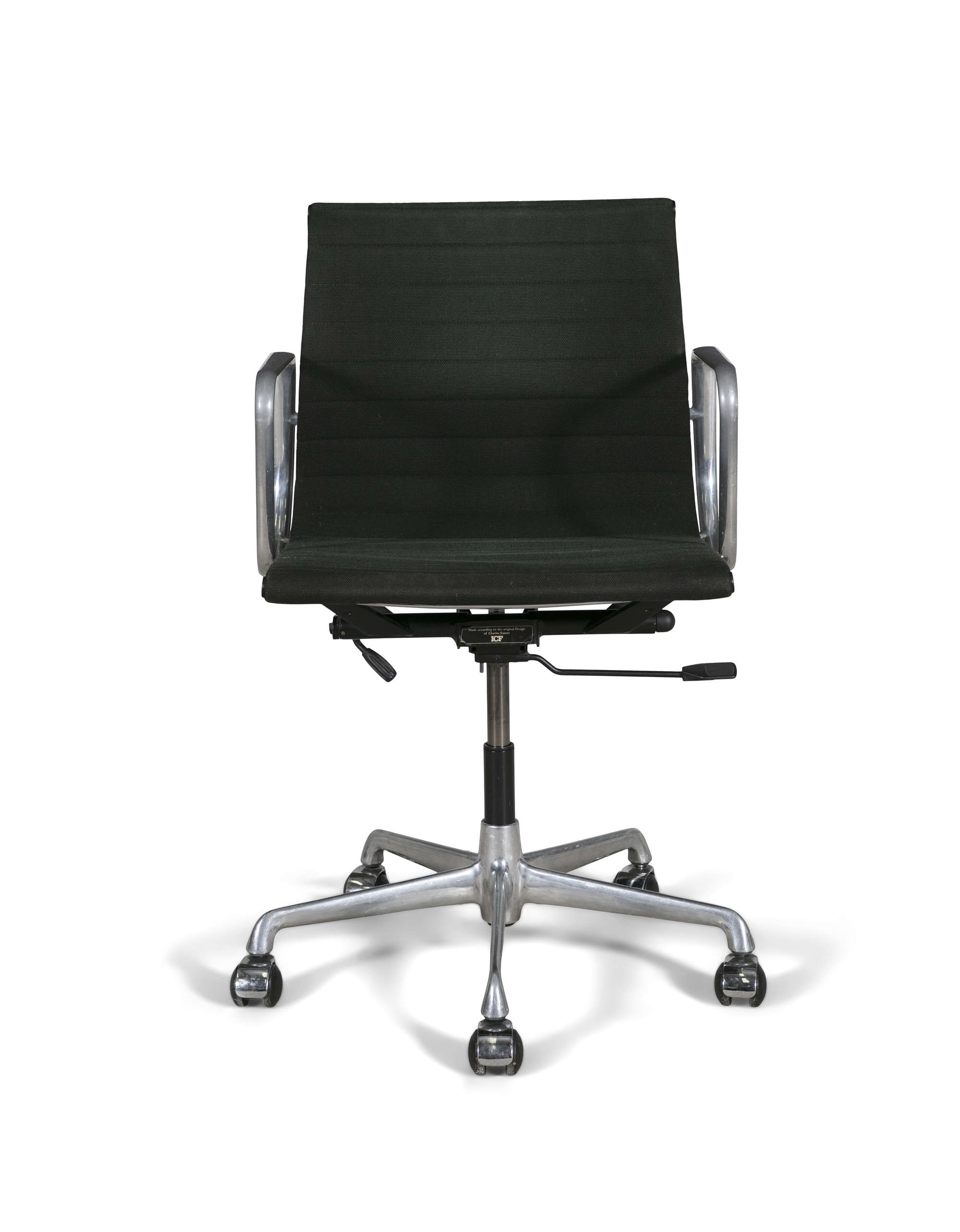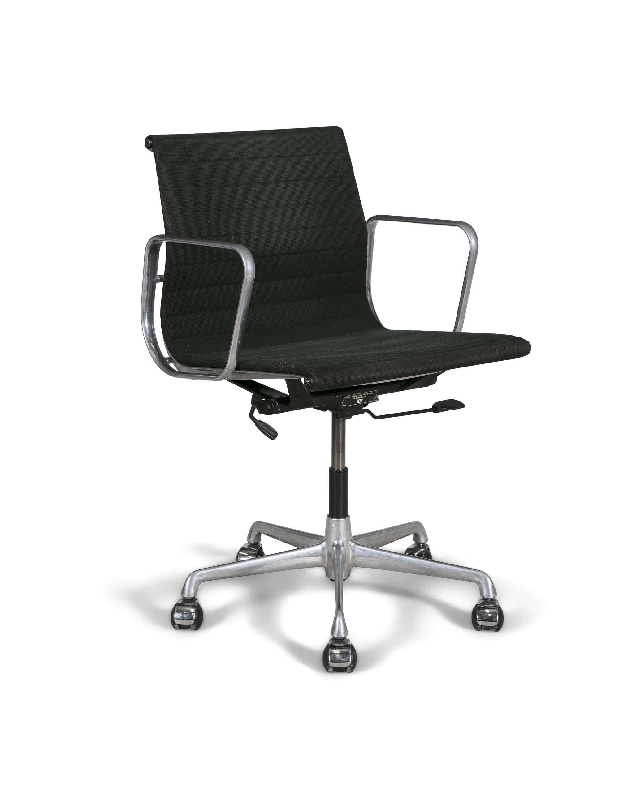 A Model Ea117 office chair by Charles and Ray Eames by ICF, Milan, chrome with fabric upholstery, Italy, c.1980s, with maker's label. 56 x 52 x 92cm(h)