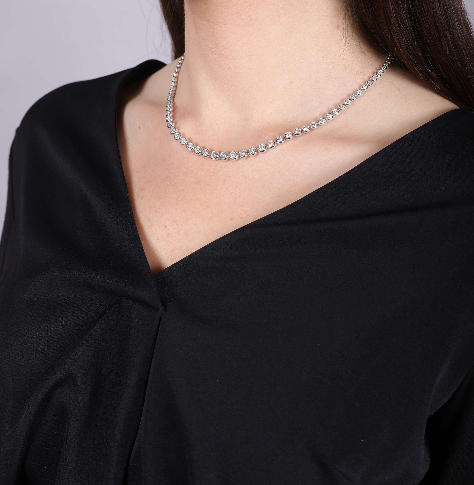 Designed as a single line of graduated collet-mounts set with brilliant-cut diamonds, mounted in 18K gold, diamonds approximately 6.20cts total, length 42cm