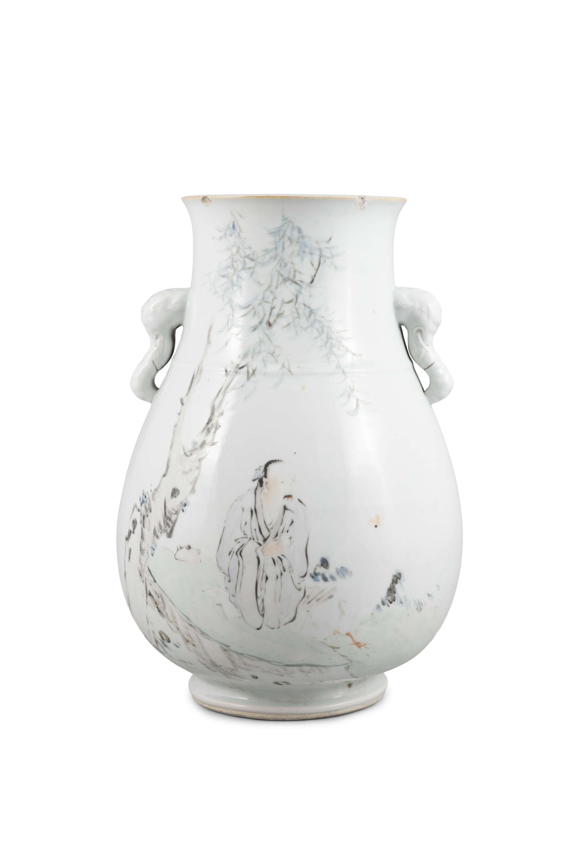 民國 任煥章款 淺降彩高士山水象頭尊