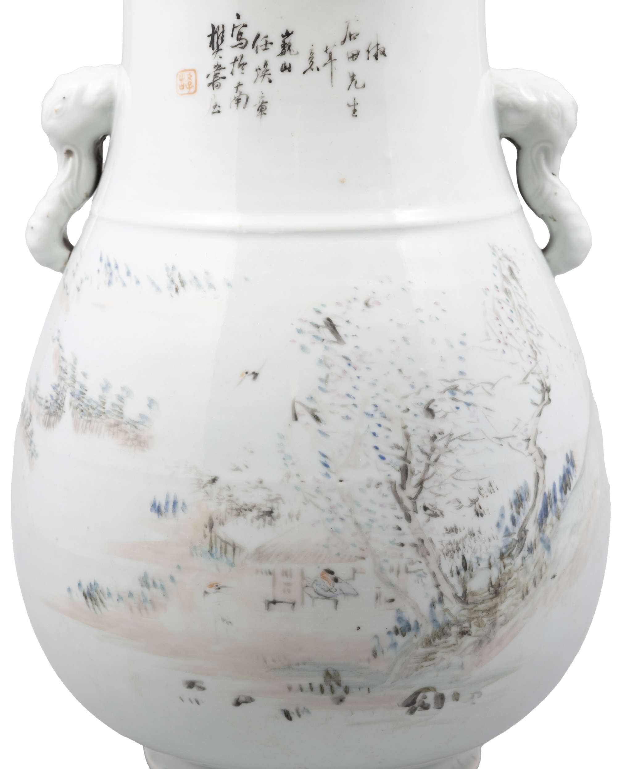 A QIANJIANGCAI ENAMEL 'SCHOLAR' ZUN VASE, MARKED REN HUAN ZHANG
