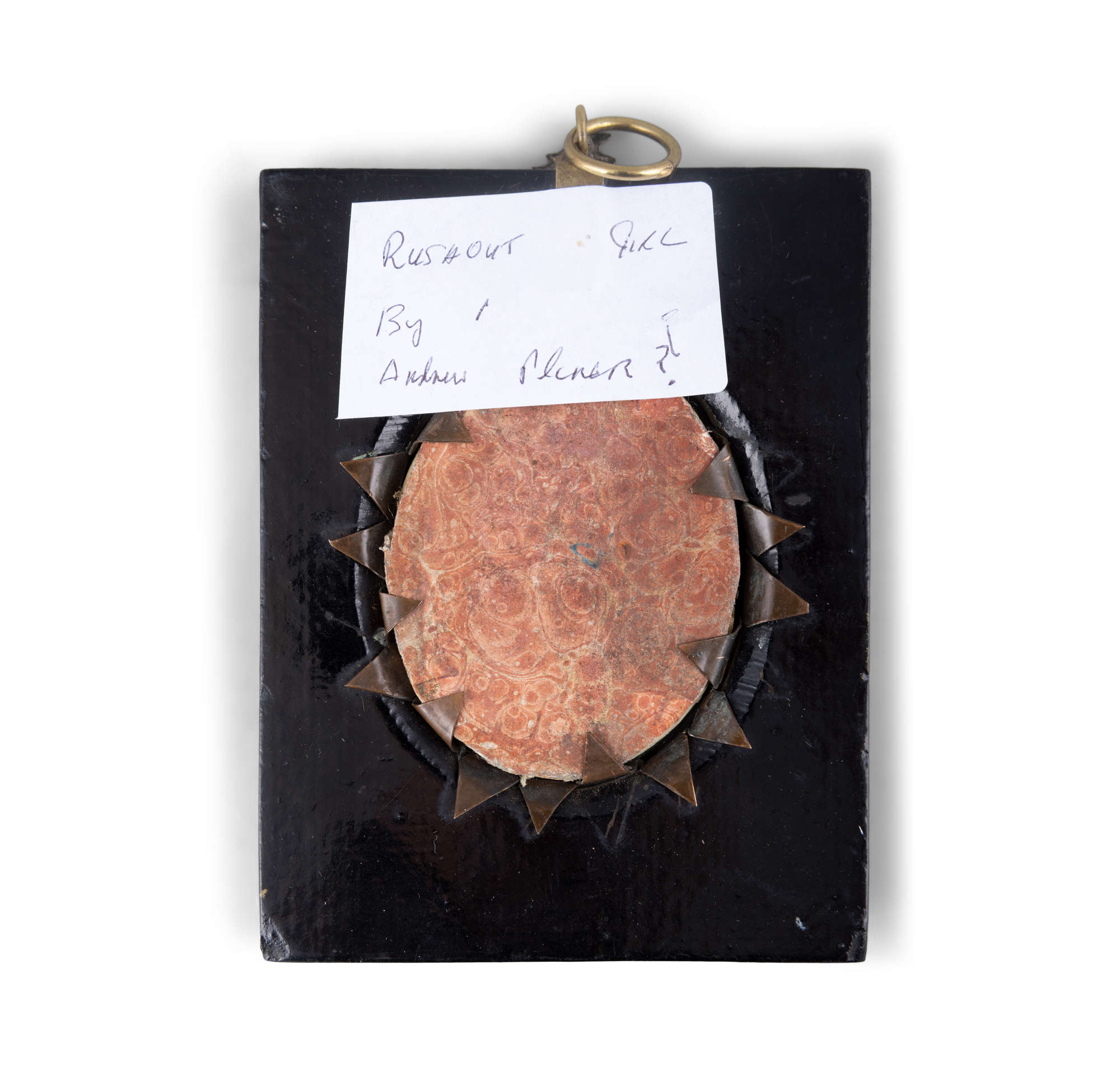 Encased in a brass metal and wooden frame, 13.3 x 10cm