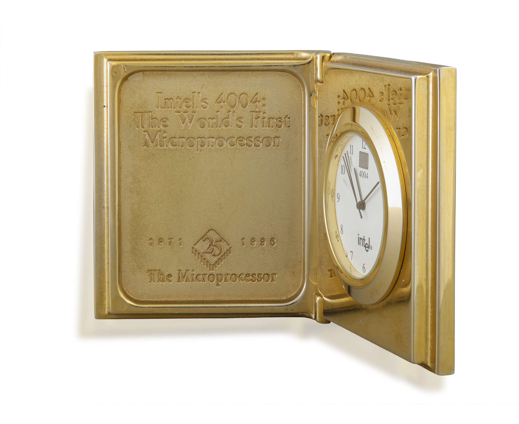 Dial : White with black painted Arabic numeral hour markers. Black hands. Applied exemplar of a Microprocessor Intel 4004, the world’s first microprocessor, created in 1971