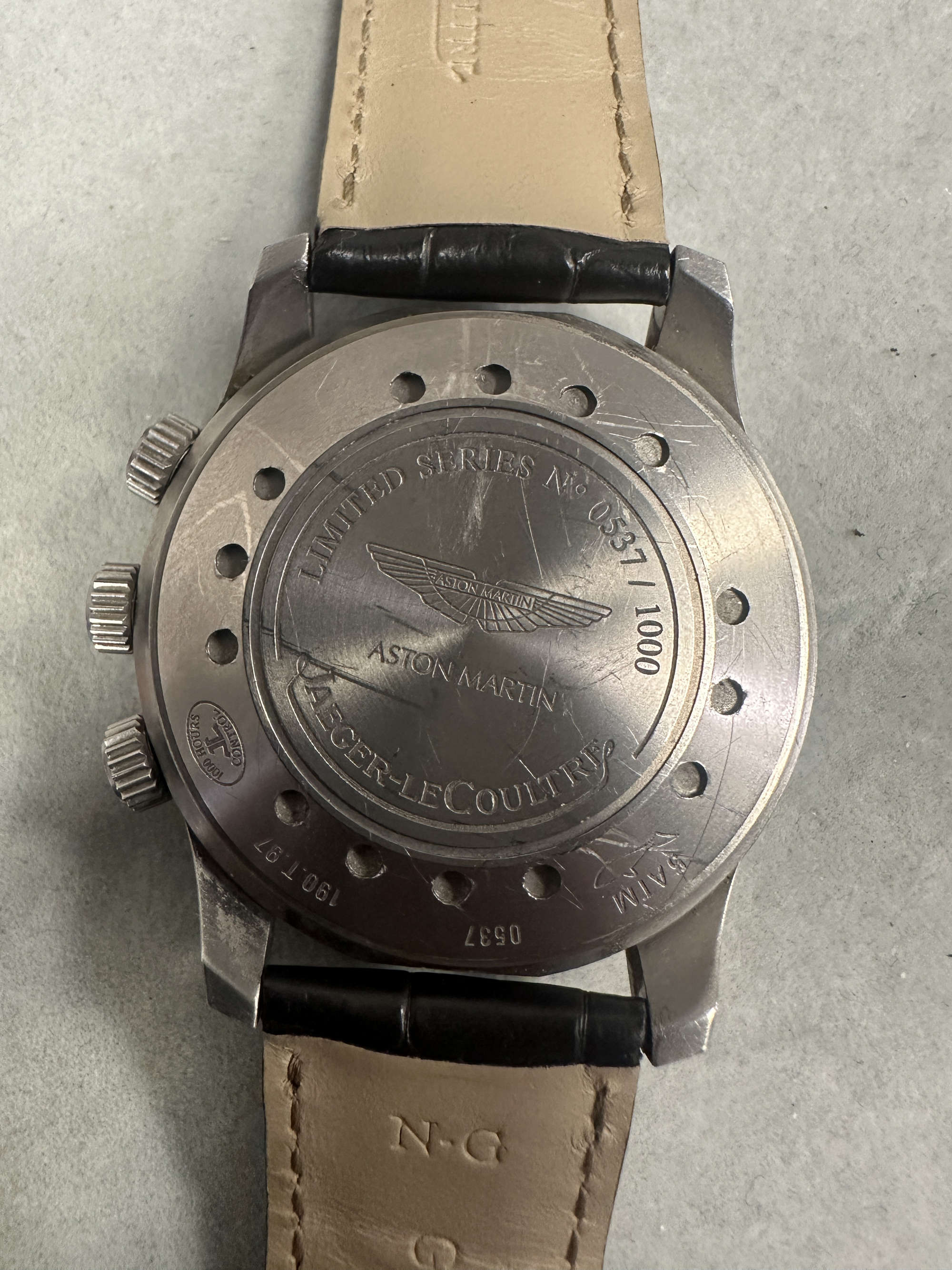 A fine and sporty titanium automatic wristwatch with alarm function, produced in collaboration with Aston Martin, complete with box, papers and warranty, circa 2000.