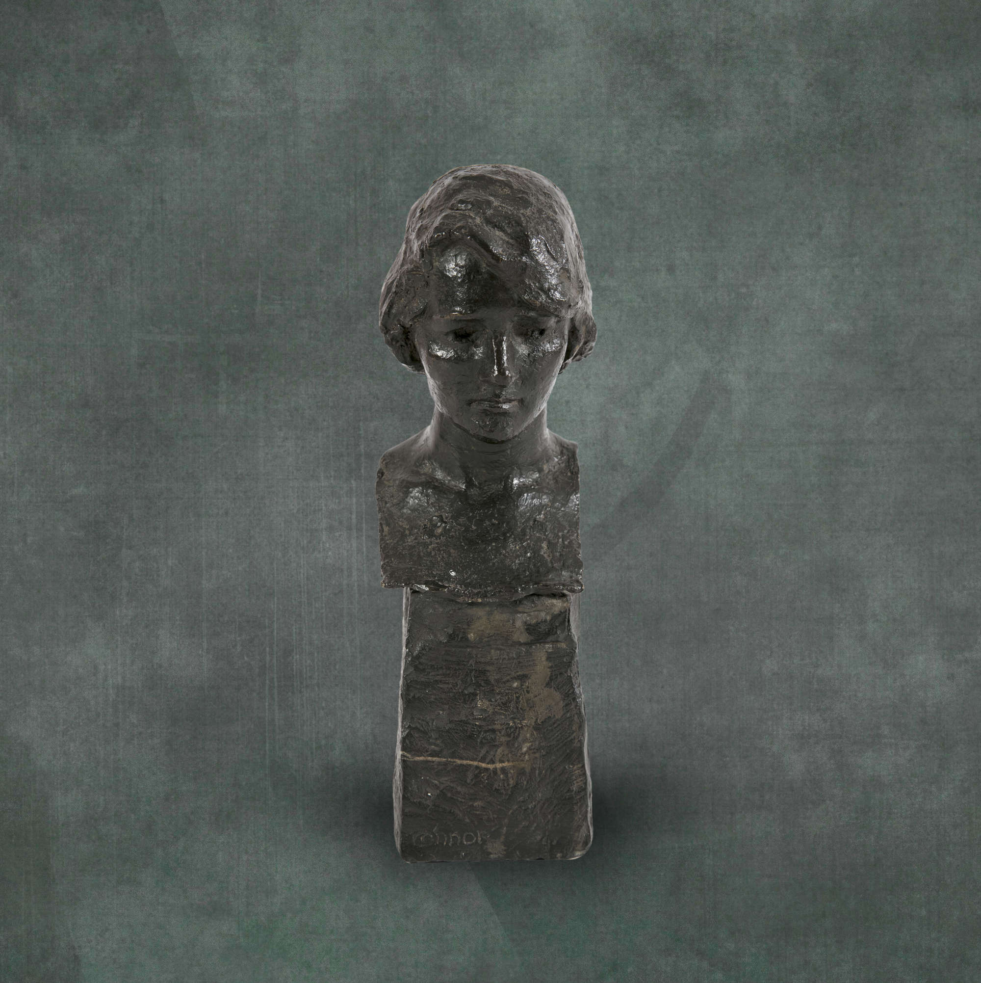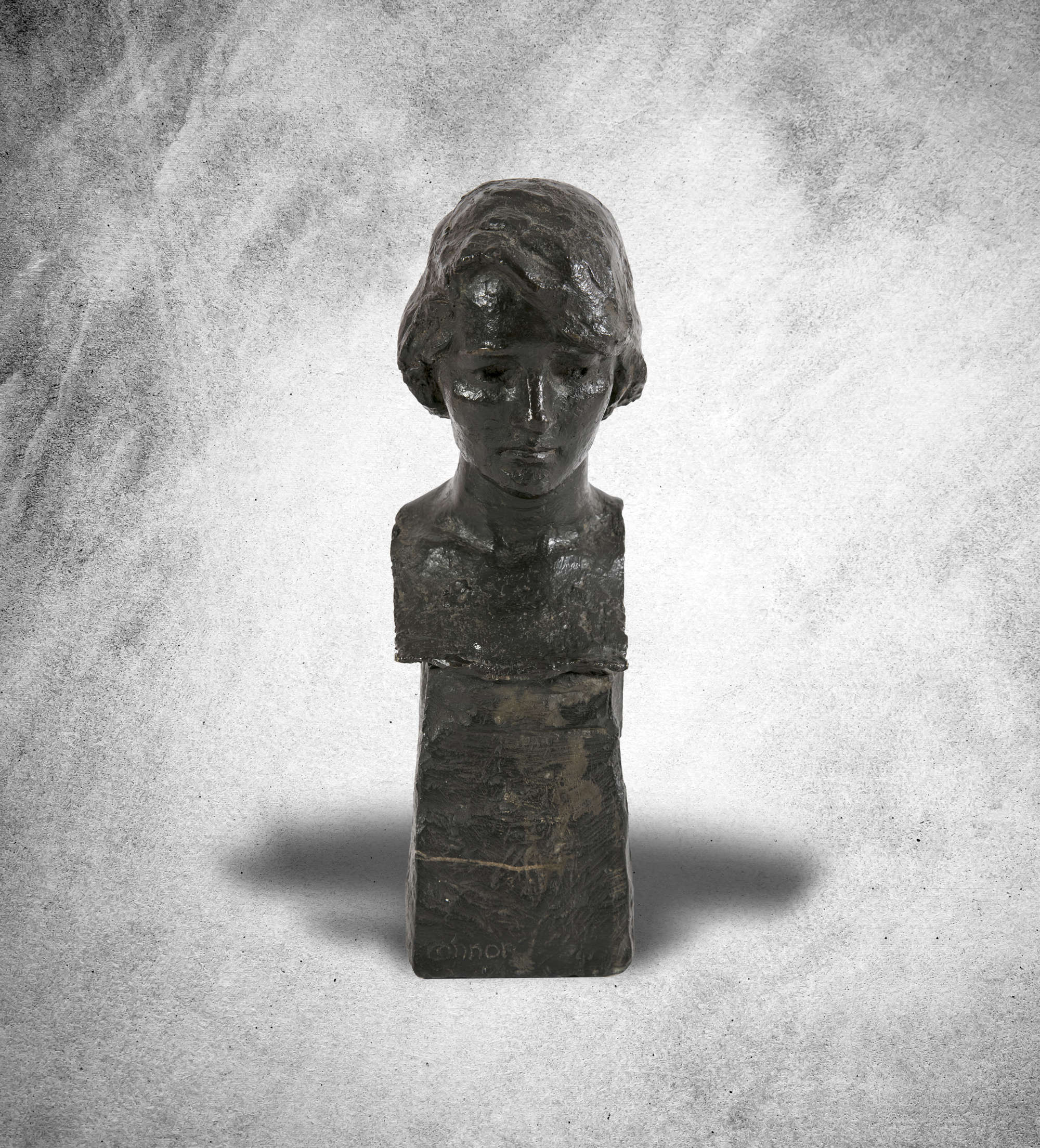This figure was identified by Máirín Allen as Peggy Connor, the artist's only child. Though Connor's daughter is more frequently remembered as Marjorie, they are presumably one and the same person. Both names occur in the RHA listing for 1938 and refer to two respective pieces: a marble (405), entitled Peggy, and a bronze (406), entitled Marjorie, both lent by Joseph Brennan Esq.