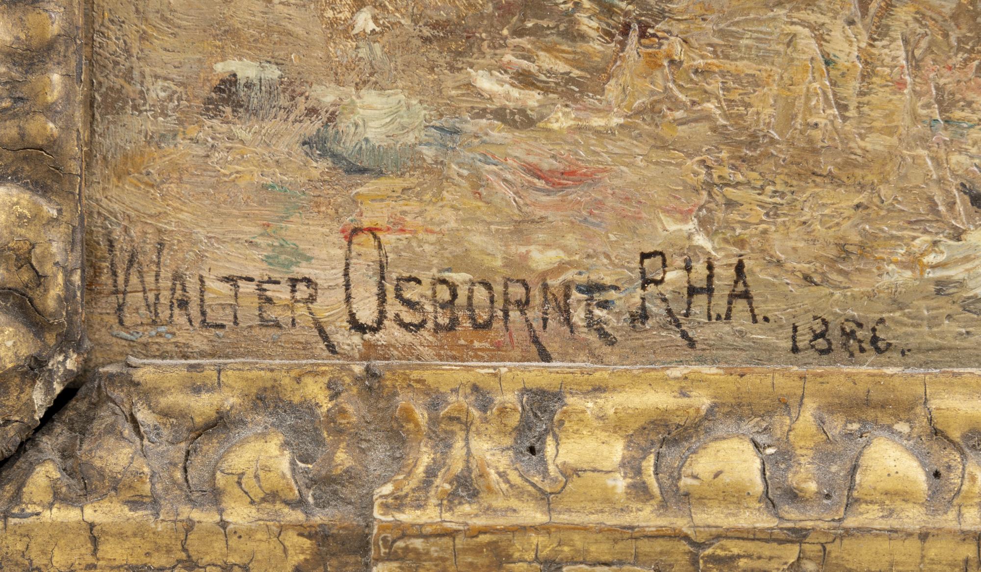 The picture is painted on a small wooden panel, signed with the artist's neat lettering, and dated 1886. It seems likely that this is the painting entitled A Sea Urchin which he exhibited at the first winter exhibition of the Dublin Art Club (of which Osborne was a founding member) in December 1886. The fact that he includes the letters 'RHA' after his name is of great significance in that having just been elected a member of the Royal Hibernian Academy in October, this may be the first occasion where he proudly included his title after his name.