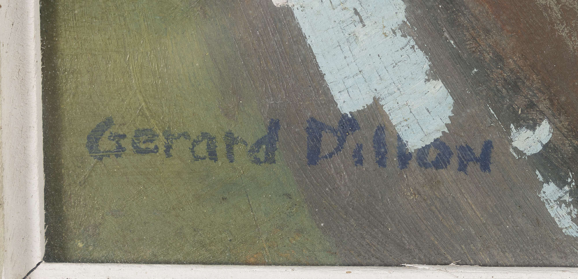 The west of Ireland represented a place of wonder and awe for Dillon, who spent many periods there, observing, sketching and painting. Born in Belfast, and living in London from the age of 18, the west of Ireland offered Dillon a sanctuary away from the red brick cities. For many artists, the west of Ireland was alluring. Due to the isolated, hard-to-reach nature of the west, the people here developed their own way of life through their sense of dress, history and mythology, and so forth, which lent itself to the appeal of outsiders. Dillon, along with many other artists, saw this region and its inhabitants as a true representation of what it meant to be Irish. The west of Ireland became a recurring theme in Dillon’s oeuvre, featuring in many of his paintings from the 1940s onwards, such as West of Ireland Landscape (1945) and The Cottage Gable (c. 1950). Even when he began to experiment visually, with paintings such as The Brothers (1968), Dillon often included visual motifs or reminders of the west of Ireland, like the stone cottages found throughout the region, not unlike the one in our picture.