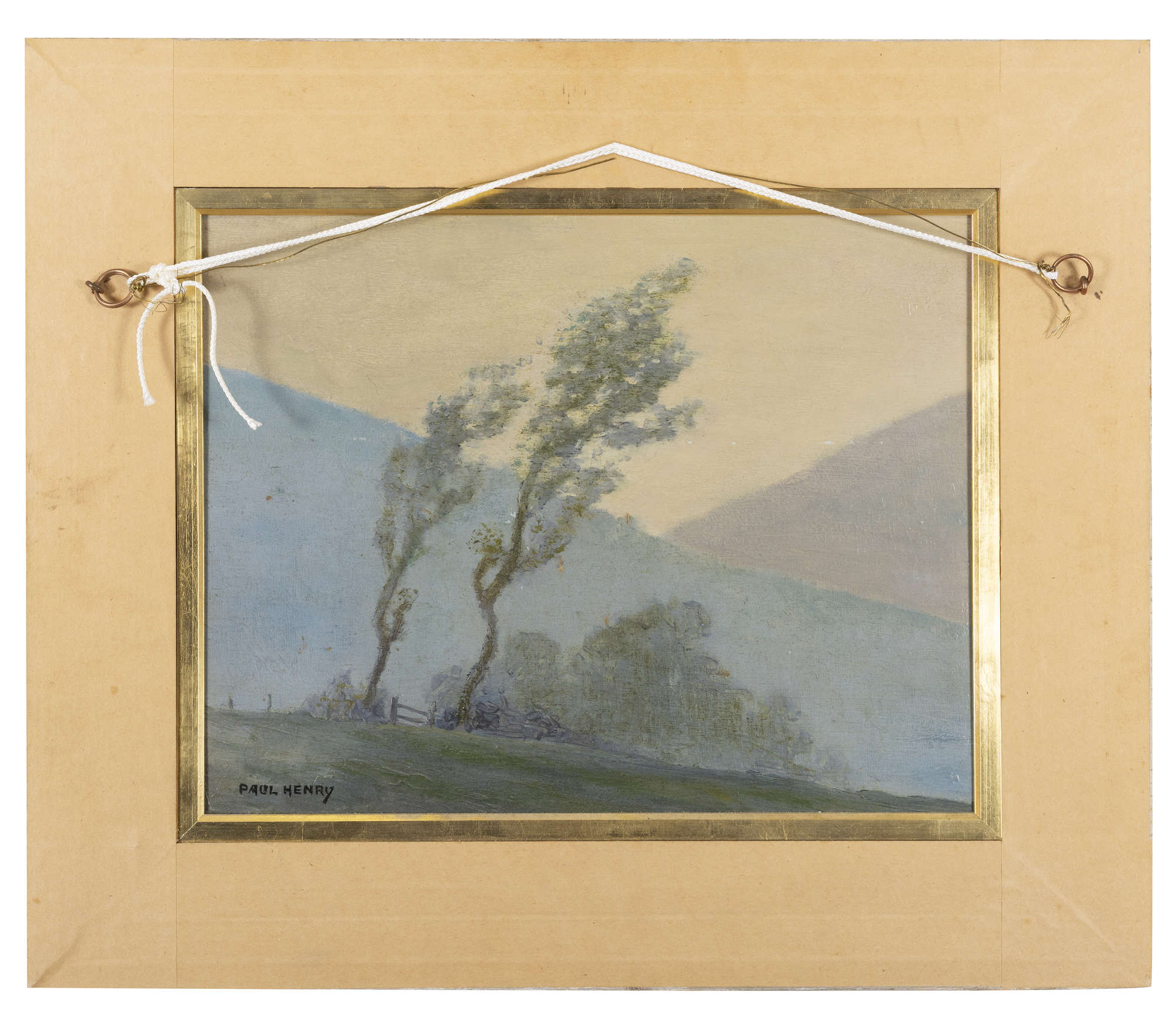 The present work, a double-sided plywood panel, boasts two signed paintings by Paul Henry.