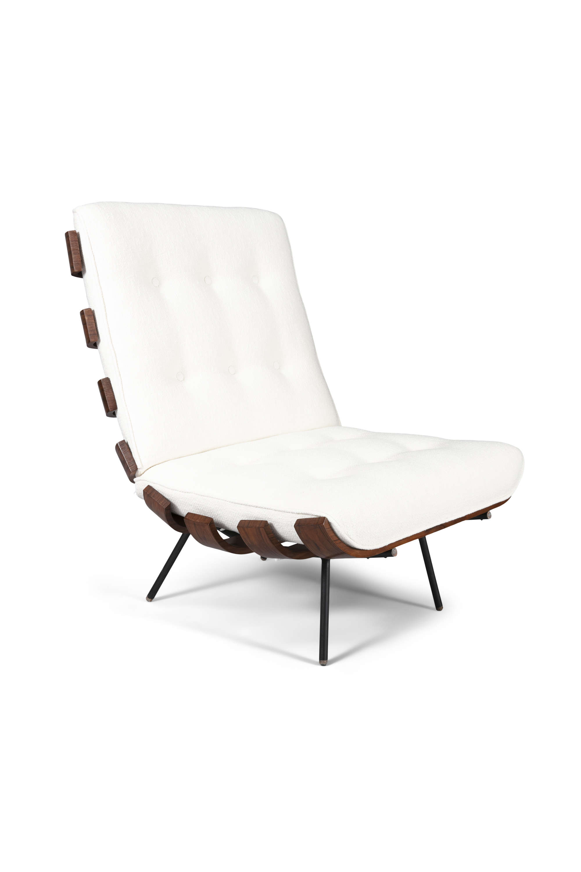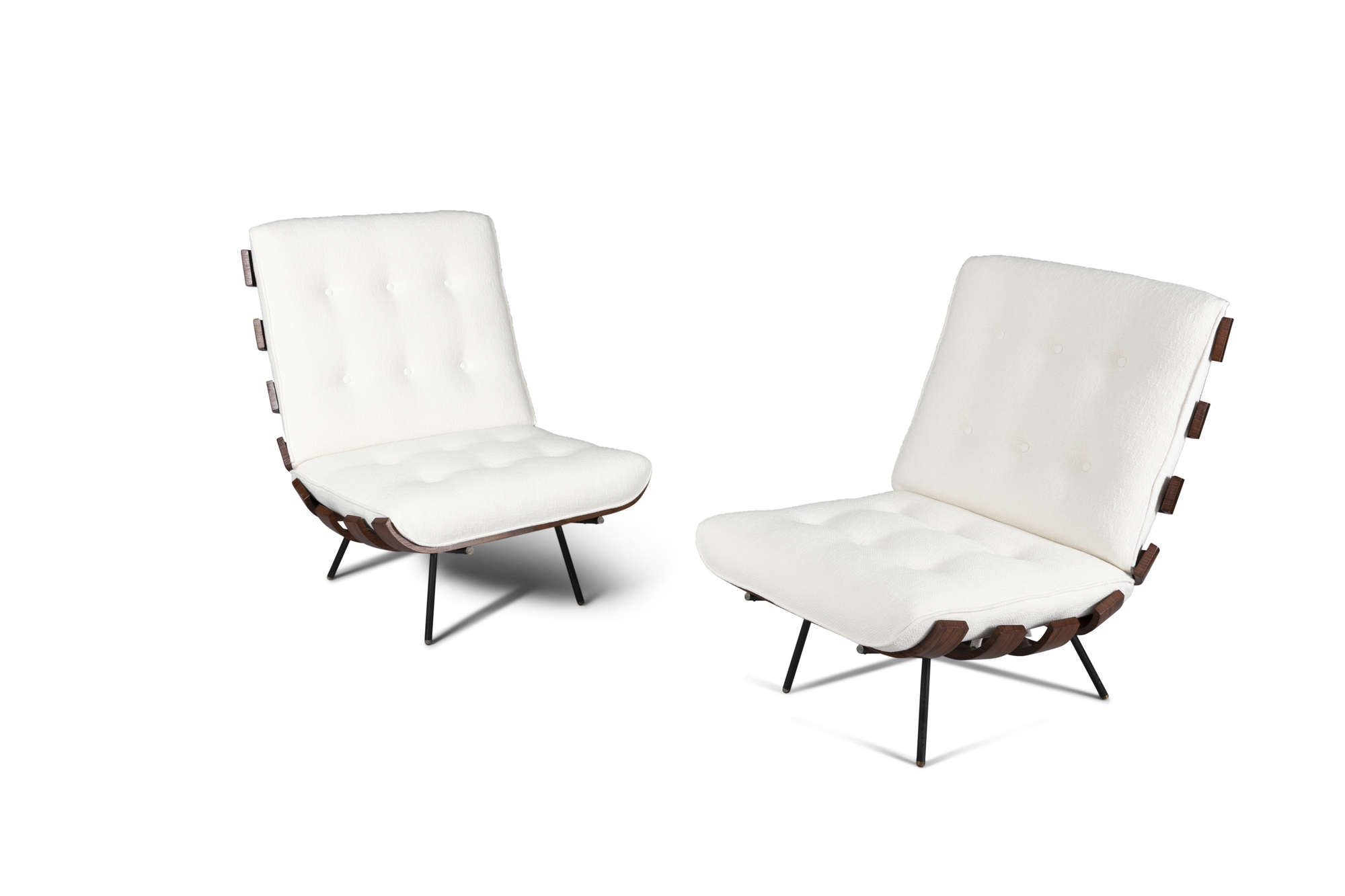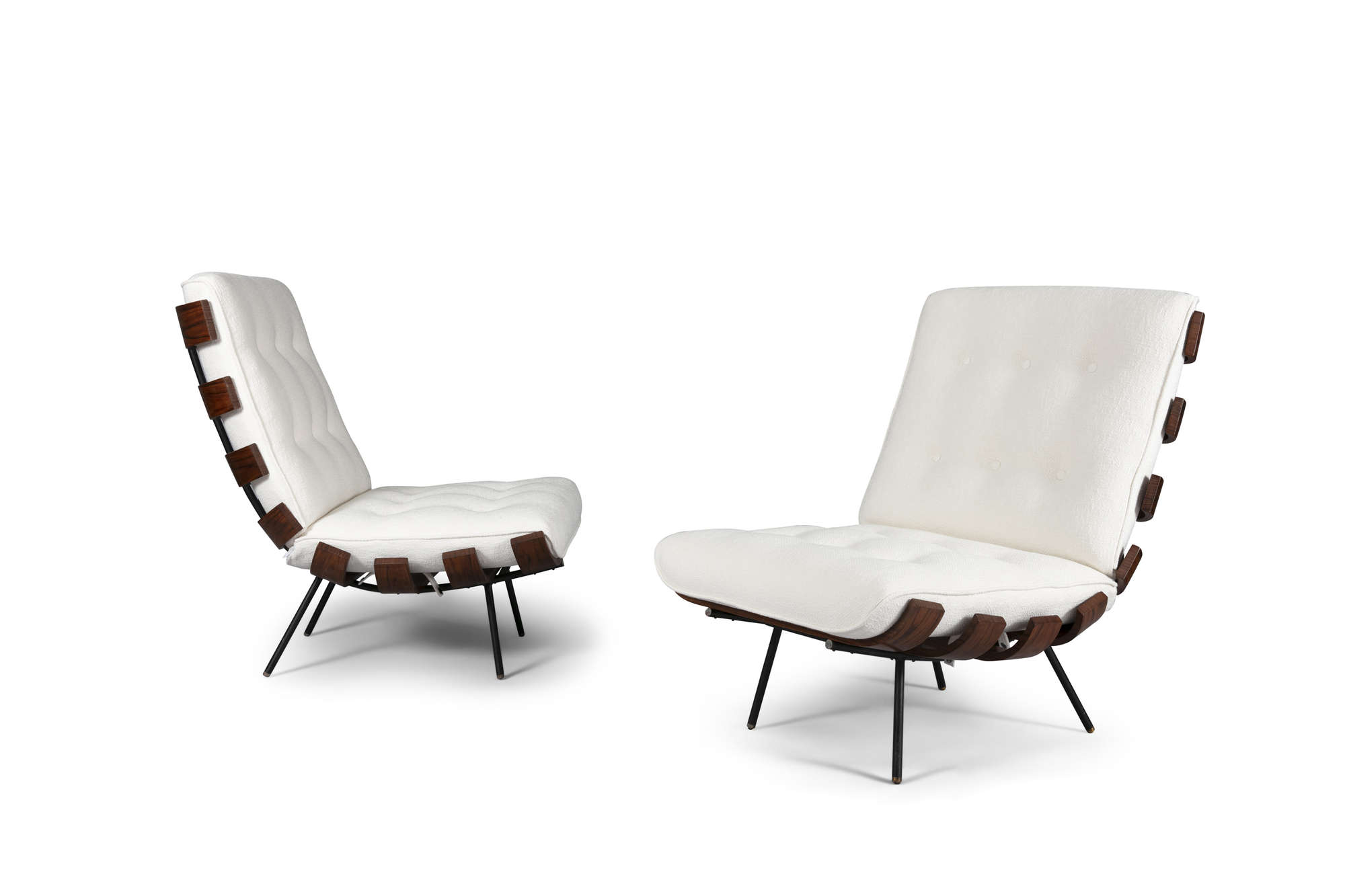 A pair of Costela 'Rib' chairs by Martin Eisler and Carlo Hauner, in Brazilian Imbuia wood and metal, c.1960, 73.5 x 71 x 73.5cm