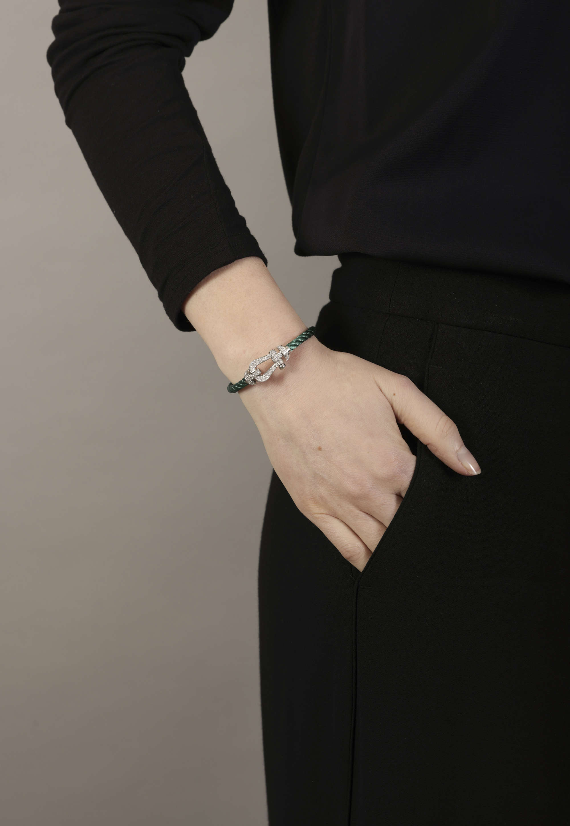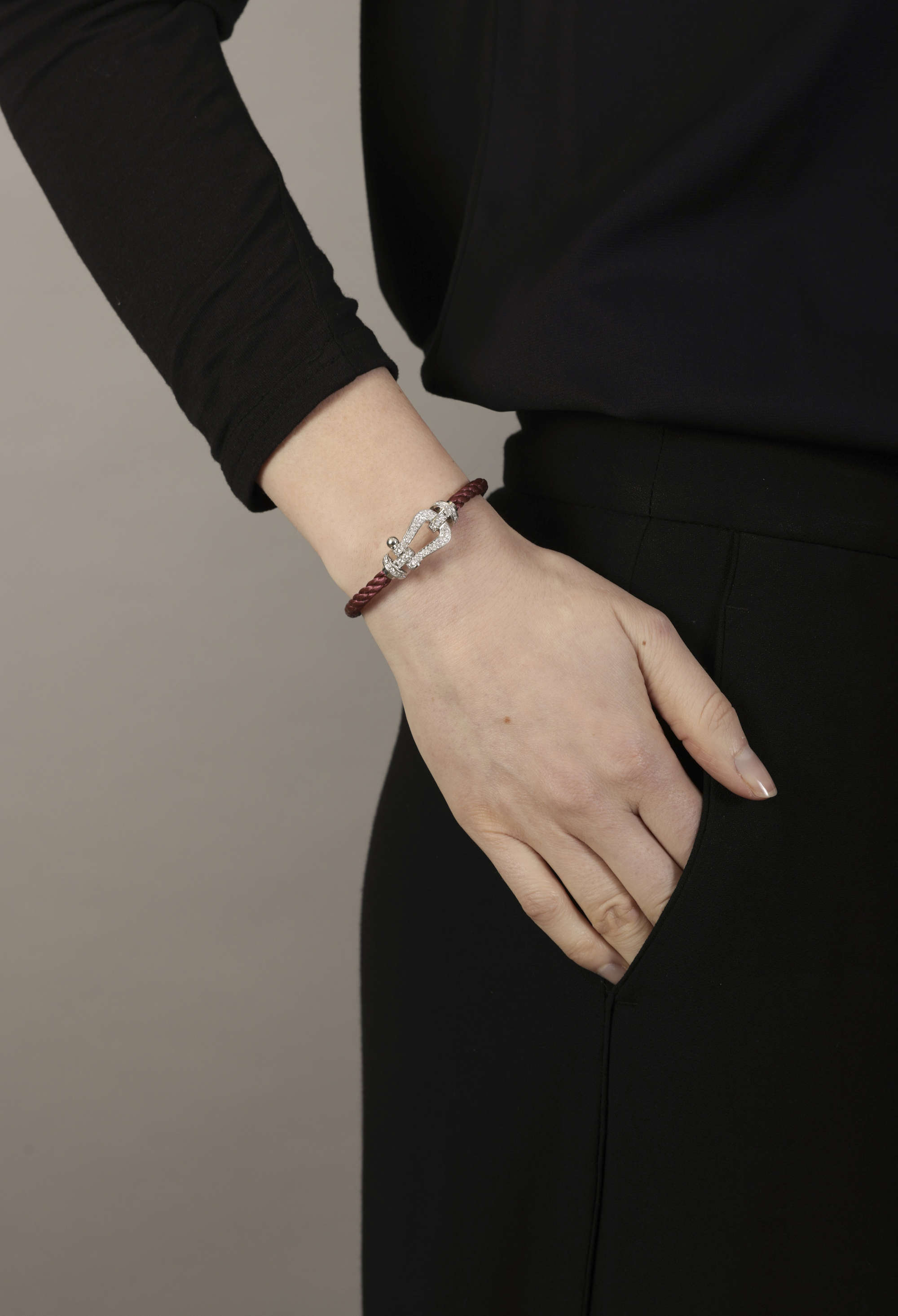 Evolving into a globally recognized and innovative Jewellery brand, FRED maintains its distinct allure while expanding boutiques worldwide. In 2012, the brand reintroduced its iconic Force 10 collection, featuring the FRED Force 10 bracelet in white gold. Drawing inspiration from Samuel's passion for sailing, the original 1960s designs were pioneering pieces crafted to appeal to both men and women. Reflecting its maritime roots, the bracelet, named after the formidable gale-force wind, is characterized by a fibre cable coiled around the wrist, imbuing it with a robust, industrial aesthetic.