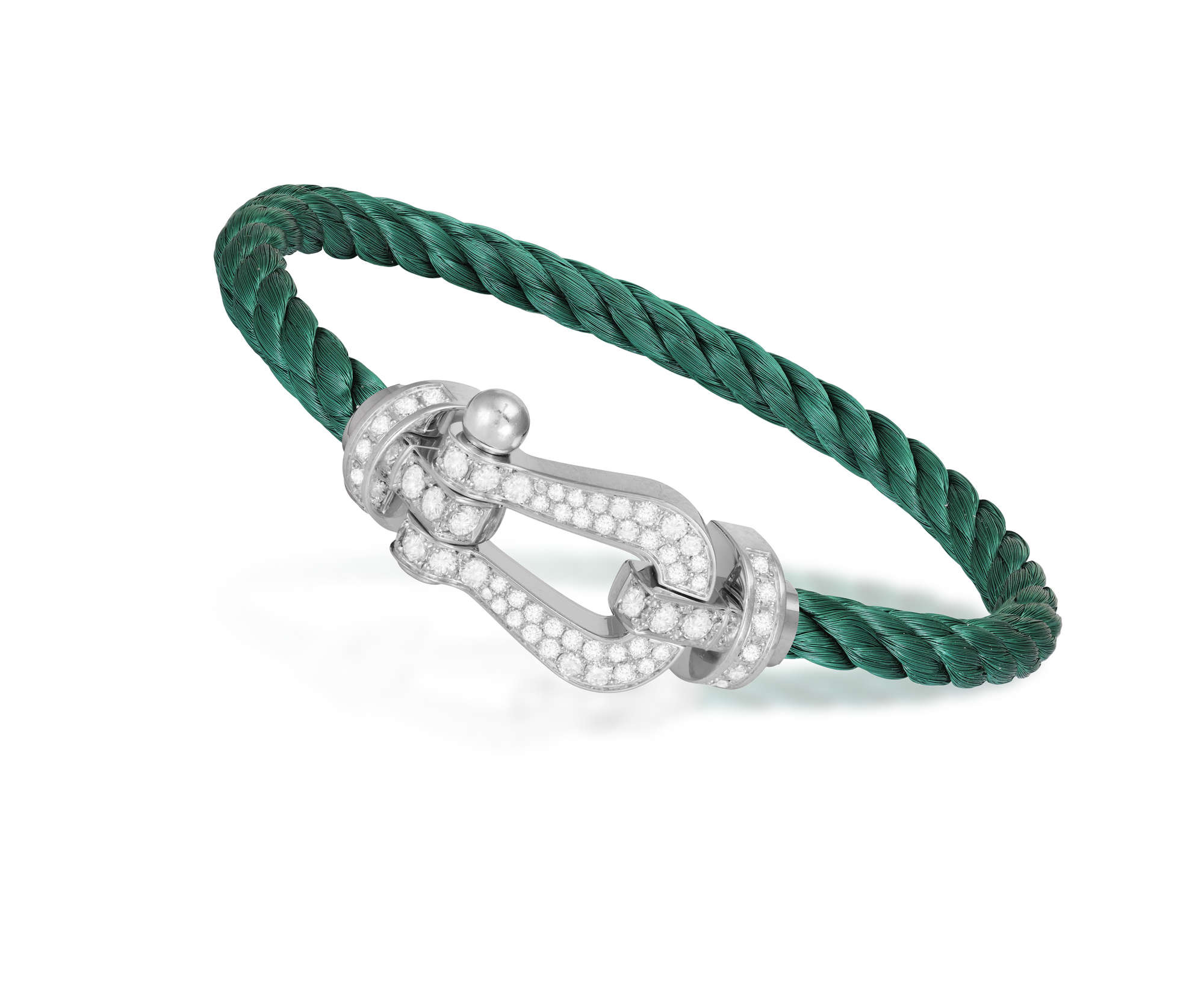 The 18K gold buckle pavé-set with brilliant-cut diamonds, with interchangeable green or red woven steel sailing cable, signed Fred, numbered, with...