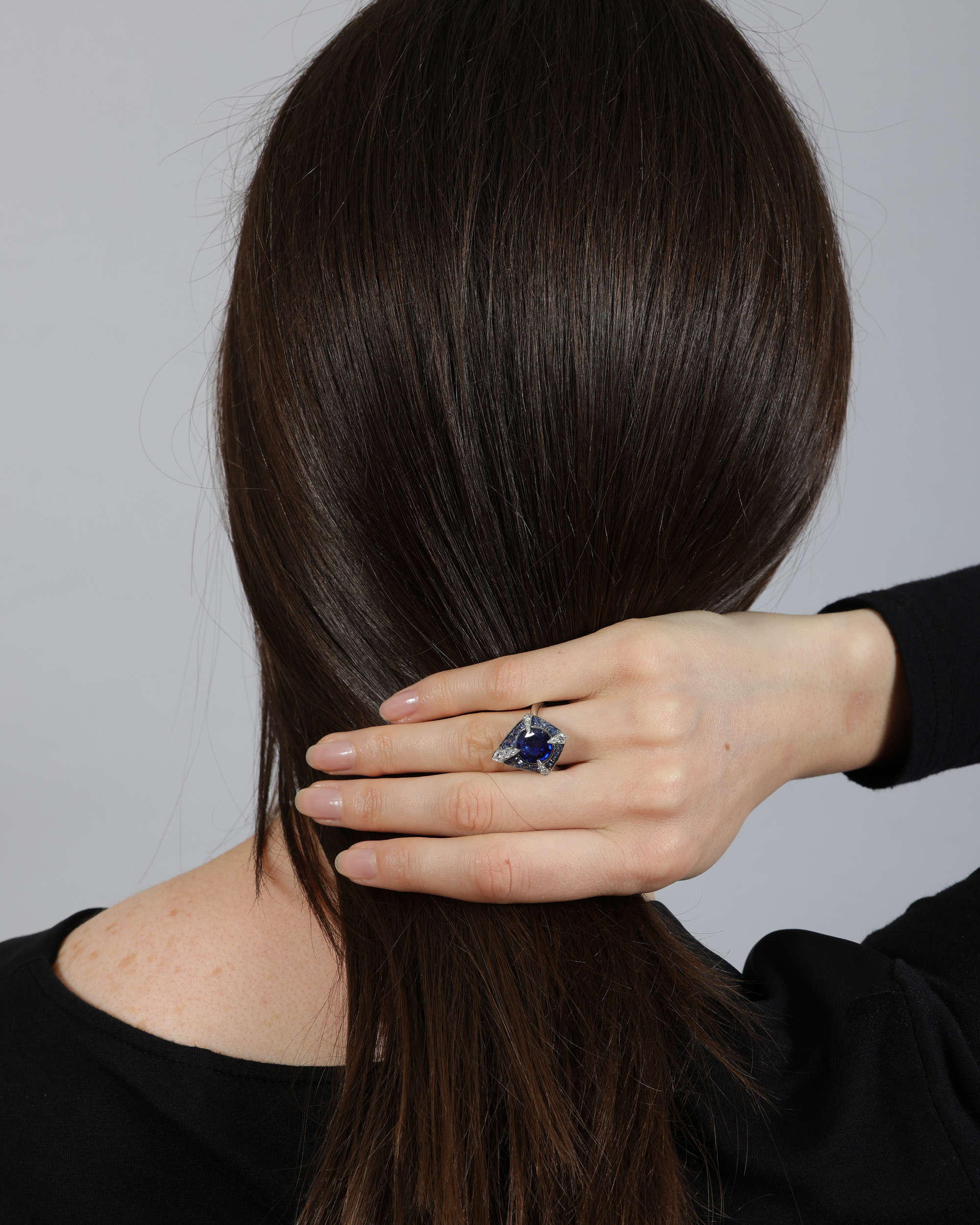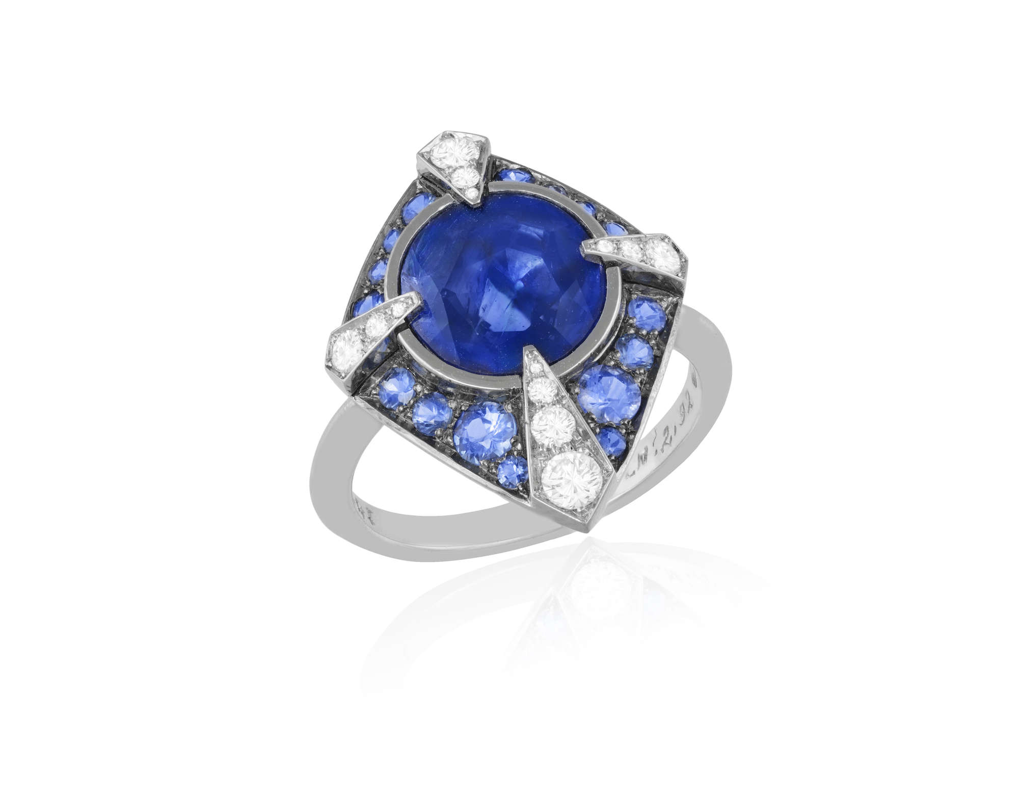 LANGI: A SAPPHIRE AND DIAMOND DRESS RING