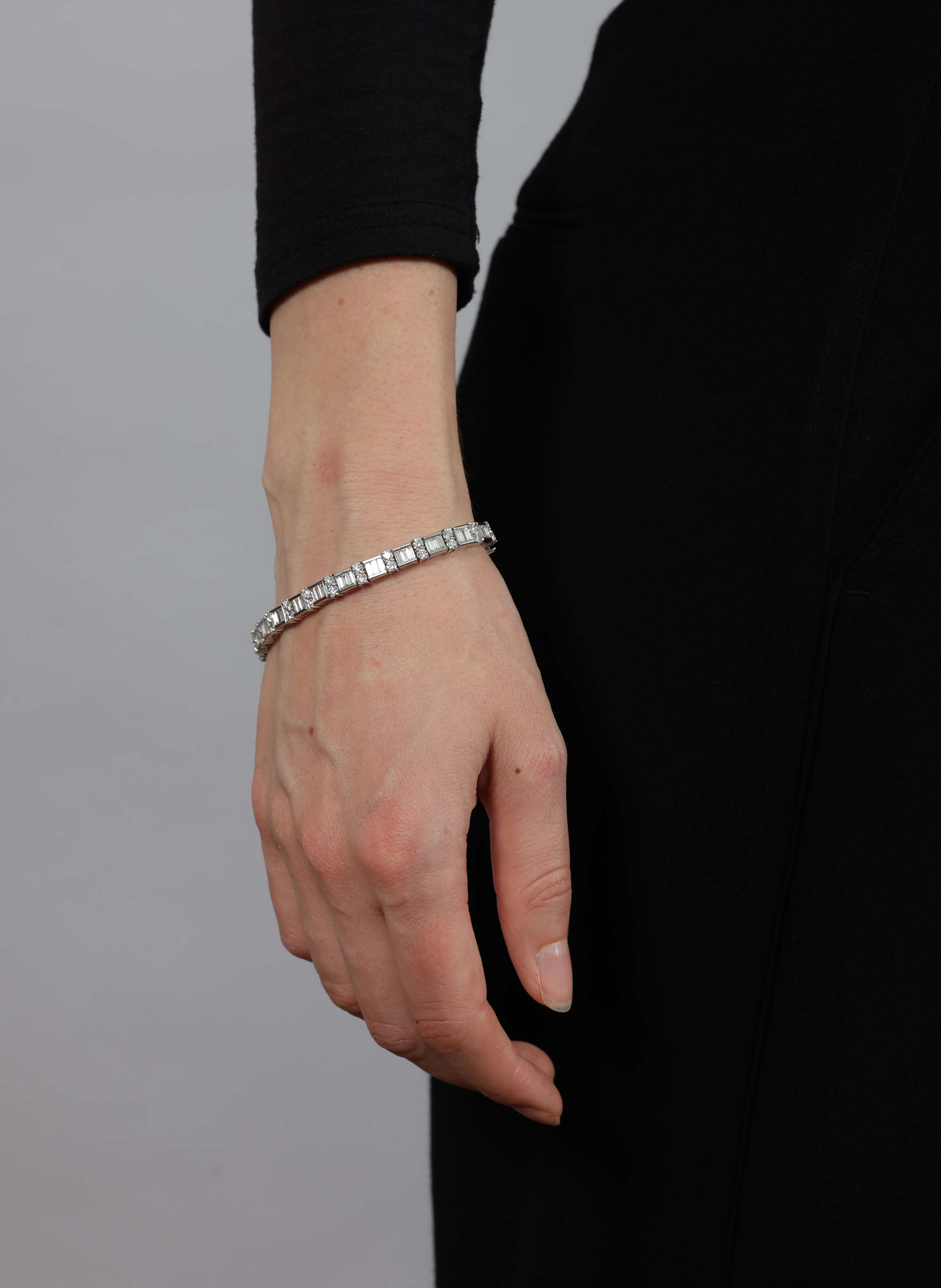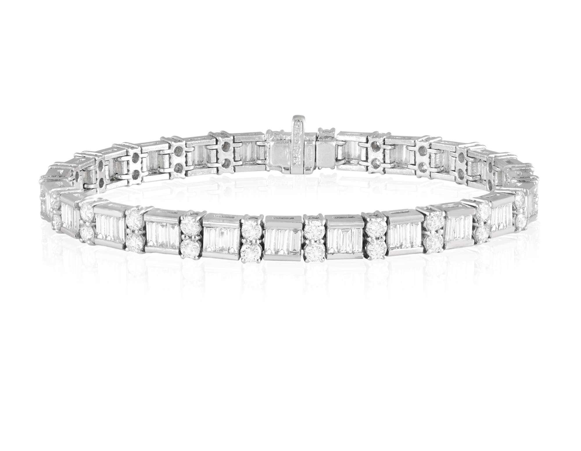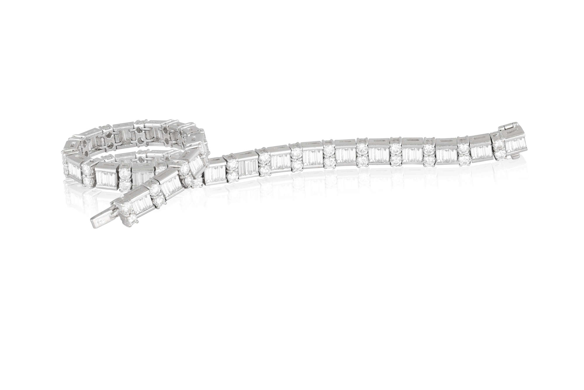 Composed of a series of channel-set baguette-cut diamonds, interspersed with claw-set brilliant-cut diamonds, mounted in 18K gold, diamonds approximately 7.00cts total, length 17.7cm