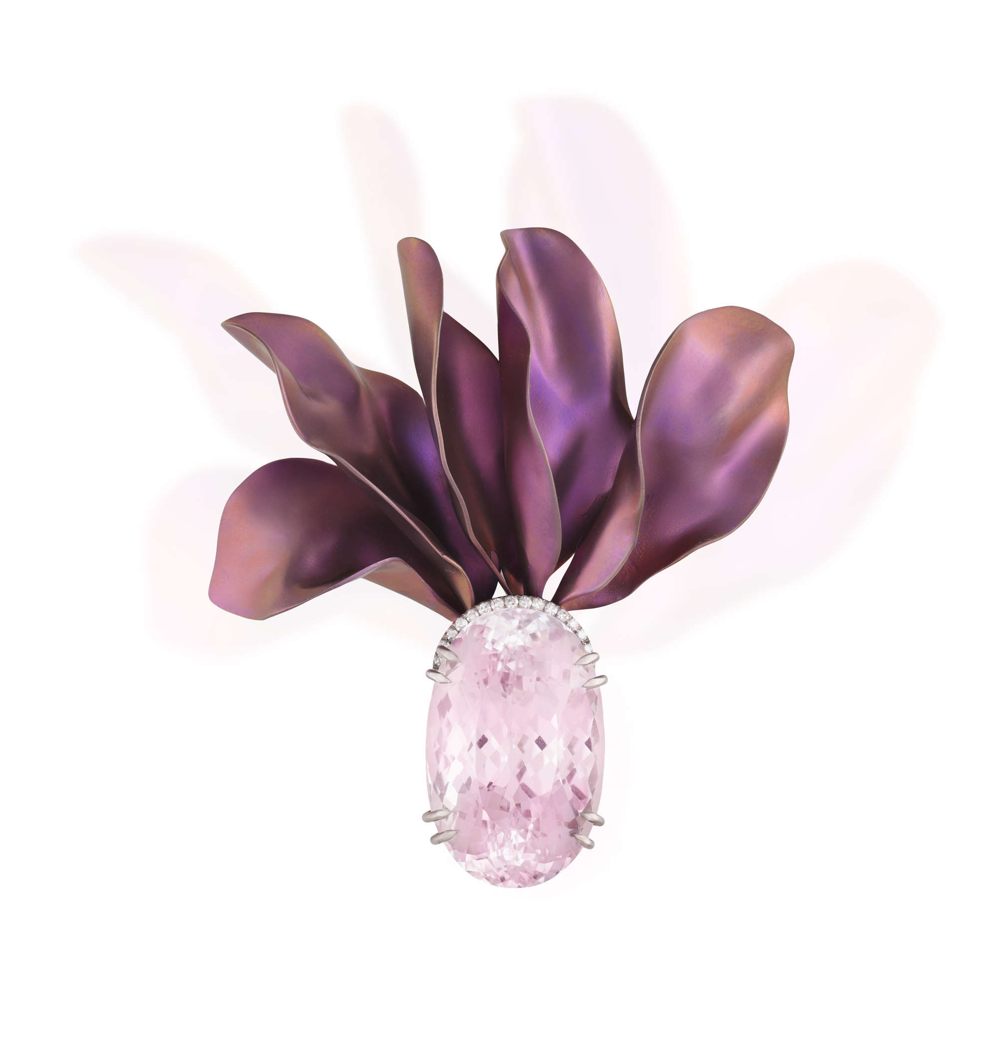 MARGHERITA BURGENER: A DIAMOND, MORGANITE AND TITANIUM 'FUCHSIA' BROOCH