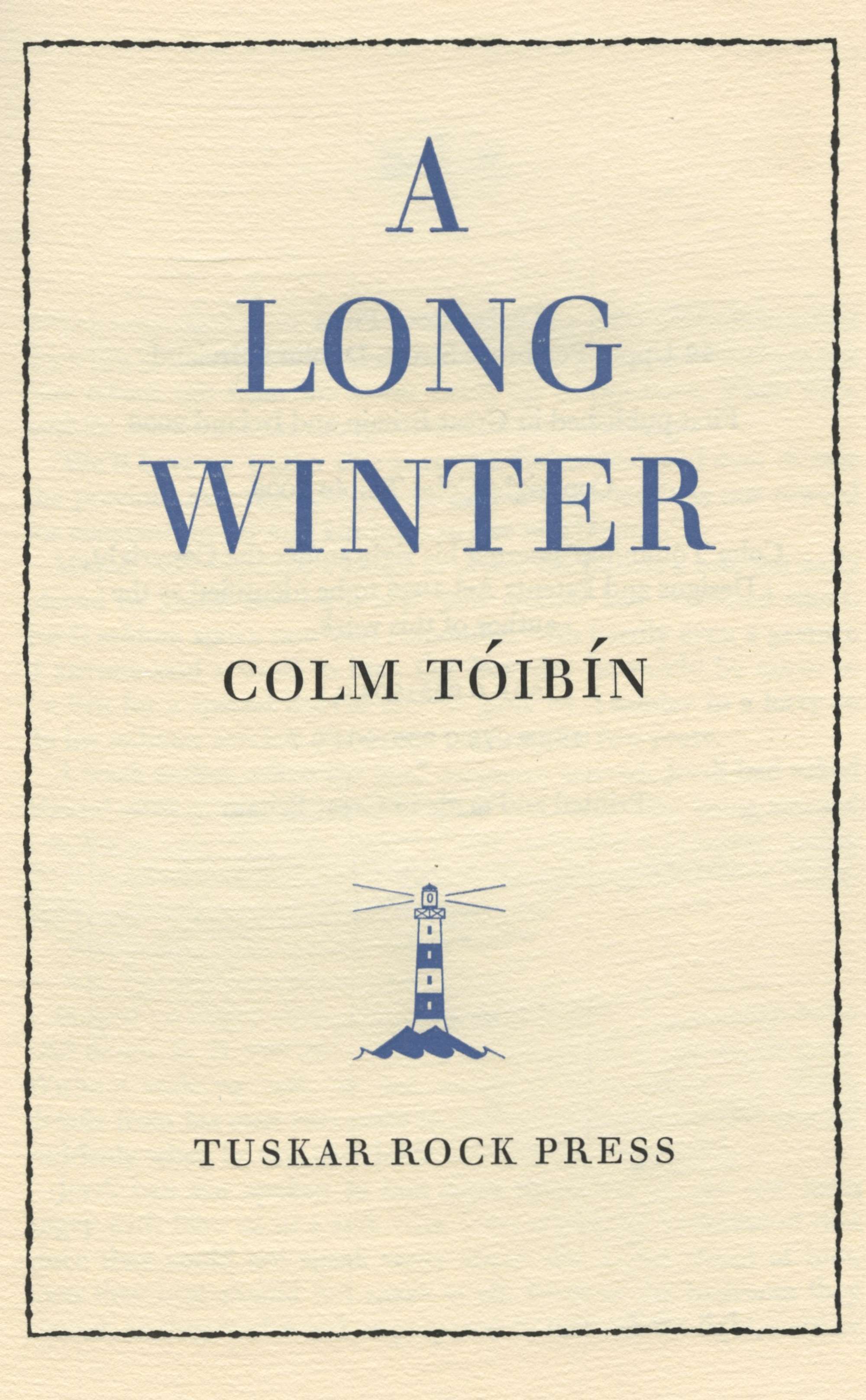 A Long Winter, LIMITED EDITION, 32/65, Tuskar Rock Press, 50 copies in full cloth in slipcase (first 15 bound in full Morocco), this copy signed by Colm Toibin on Zerkall Mould...