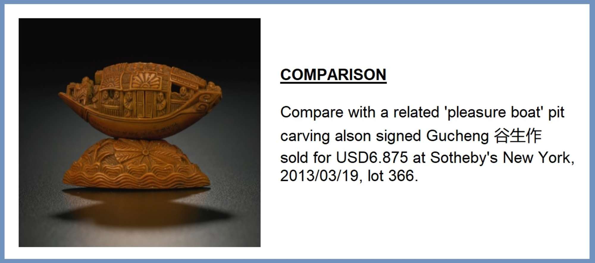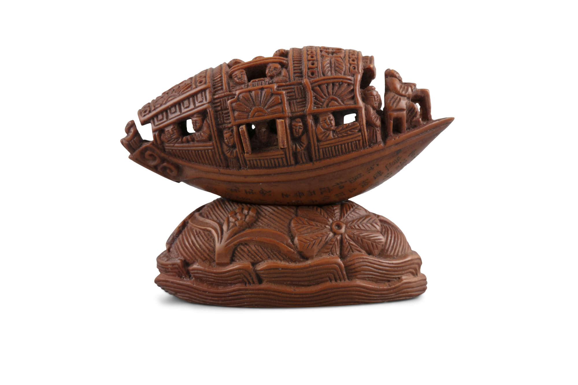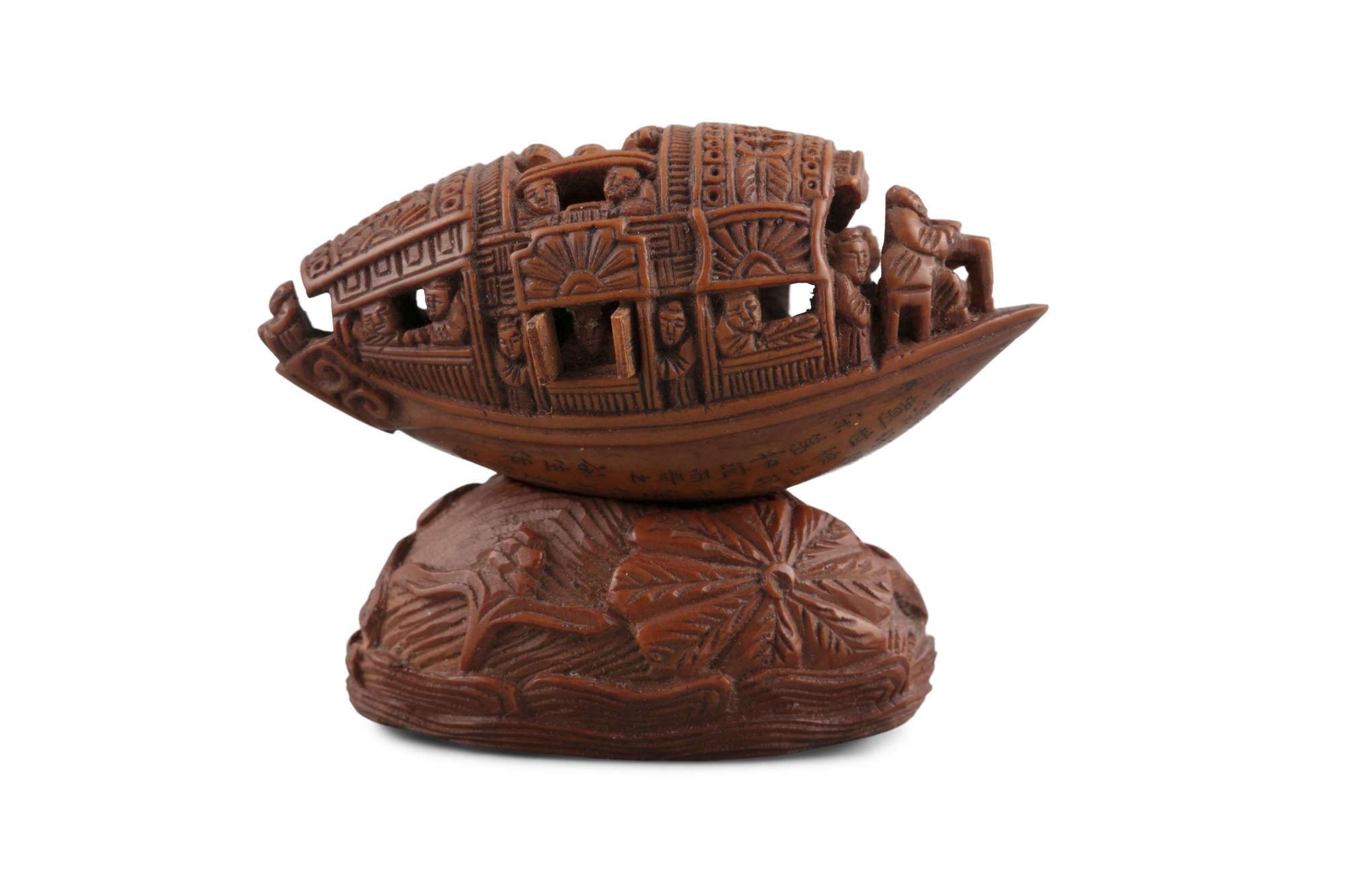 AN OLIVE PIT CARVING OF A 'PLEASURE BOAT' IN THE MANNER OF GUCHENG 谷生作