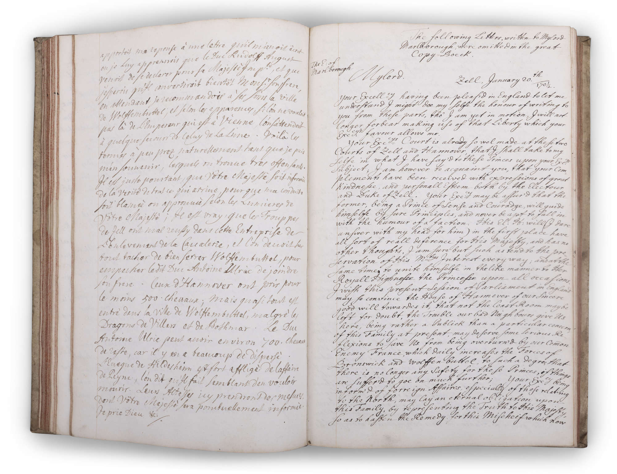 - Letters written to Earl of Malborough, Cell January 1702- regarding the common enemy in France, his favour in the courts of Zell and Hanover