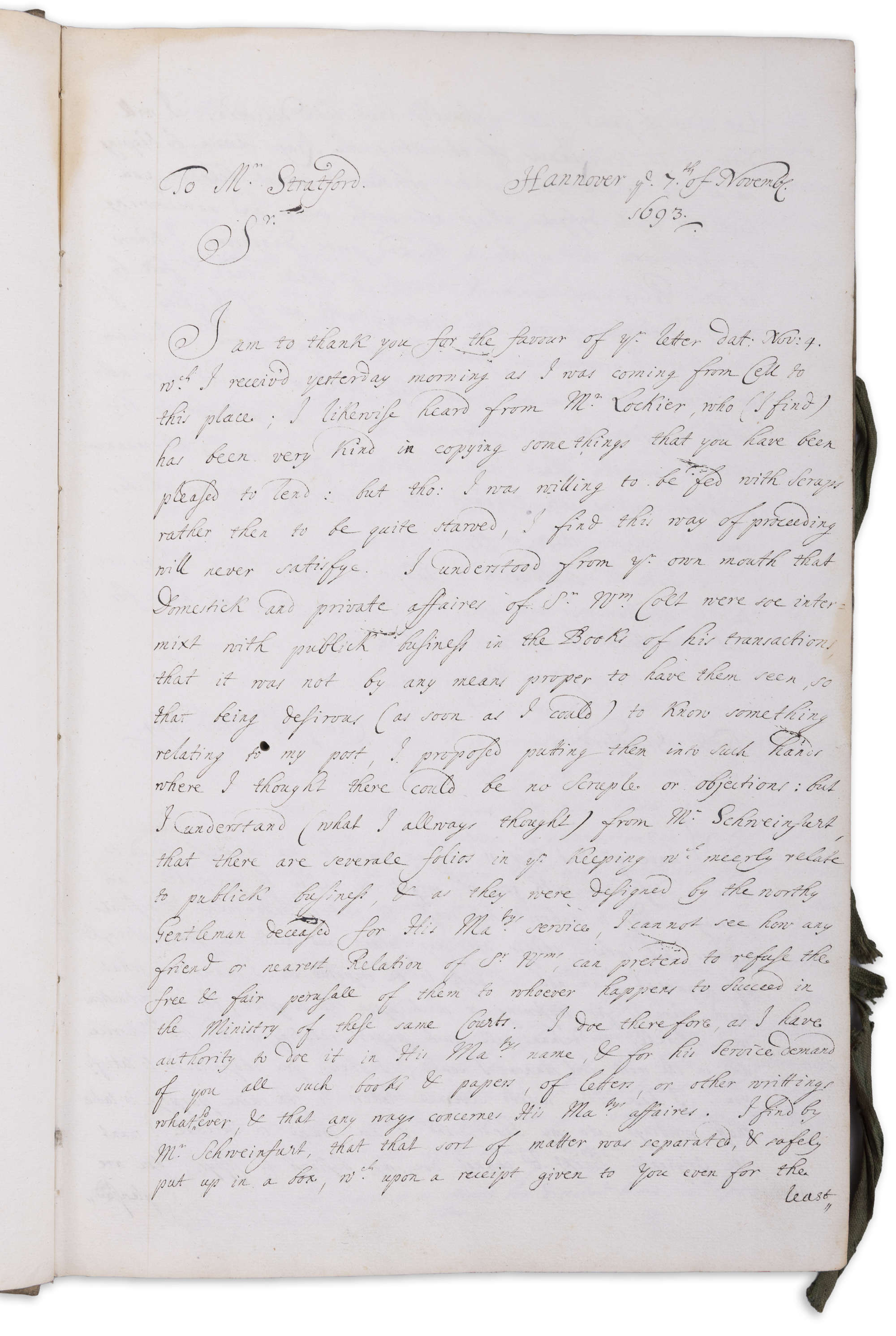 - Letters to Mr. Stratford, Hanover November 1693 & Cell Nov,. 1694