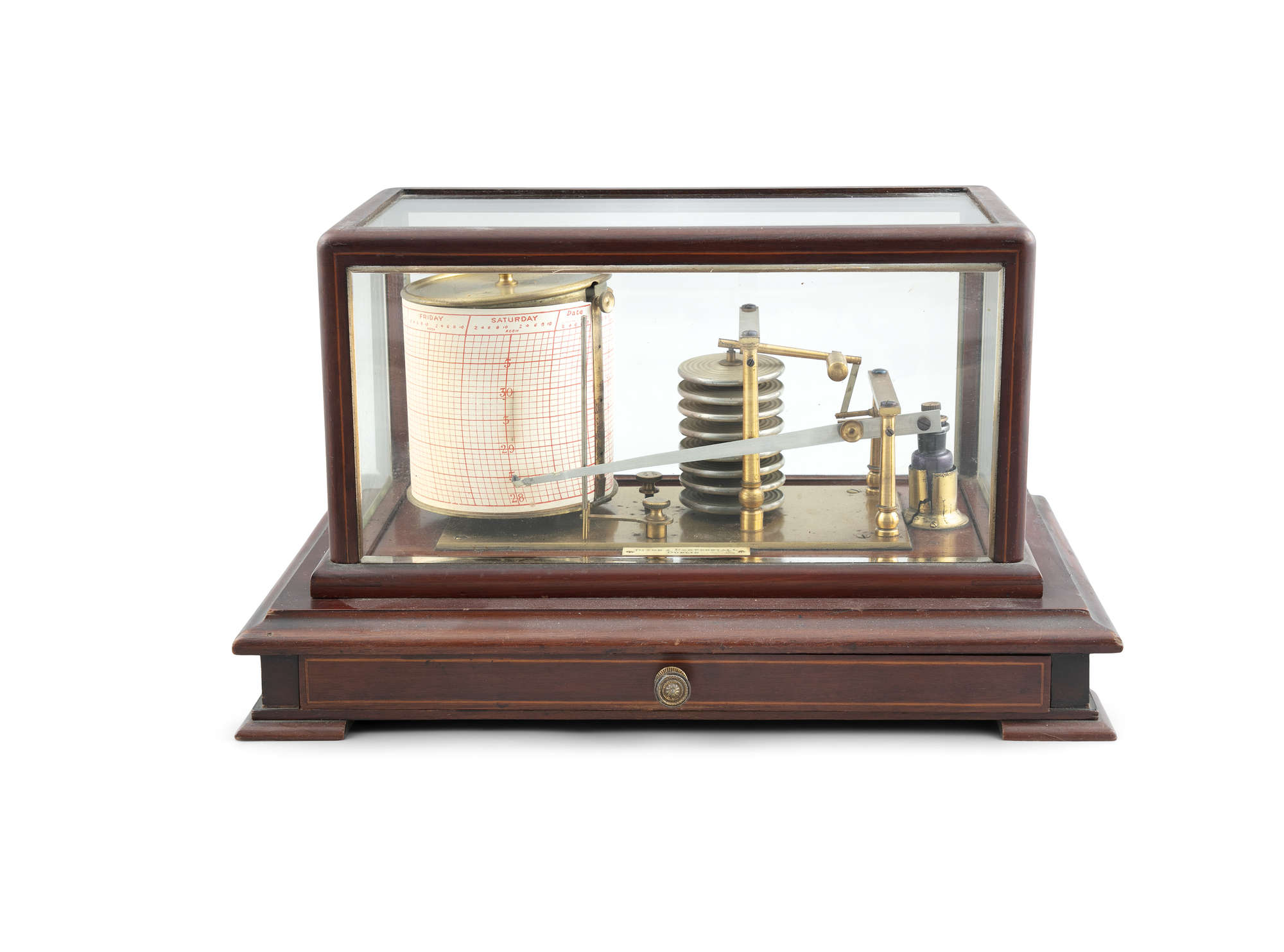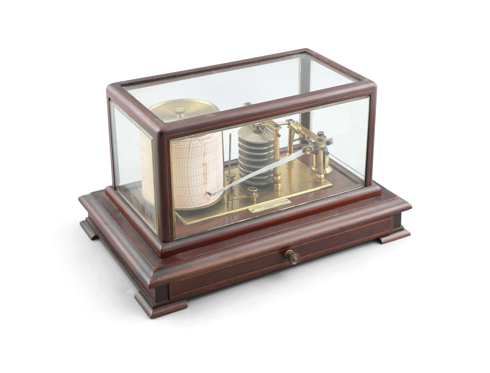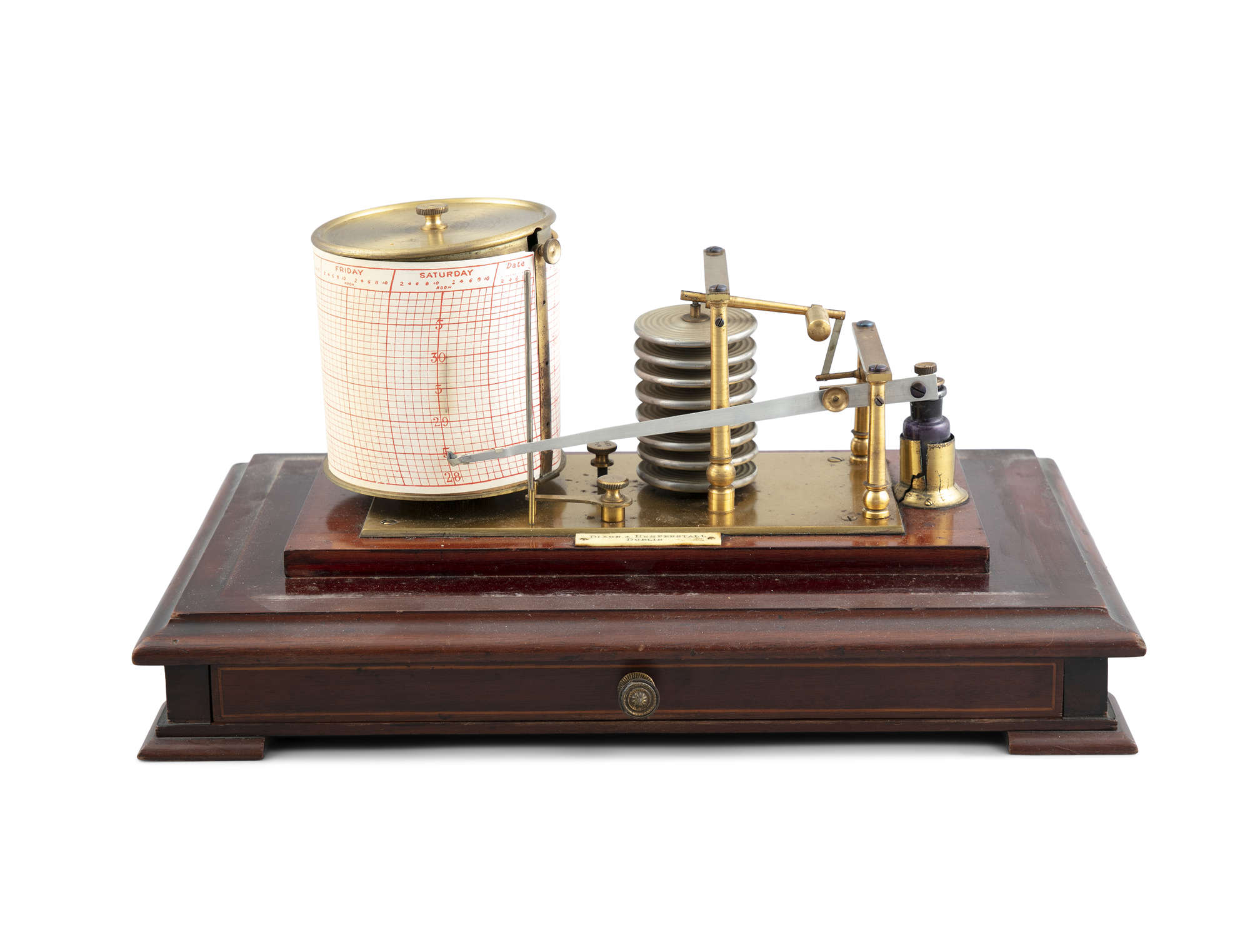 A MAHOGANY CASED BAROGRAPH BAROMETER, retailed by Dixon & Hempenstall, Dublin, the base with single frieze drawer. 37 x 22 x 21.4cm high