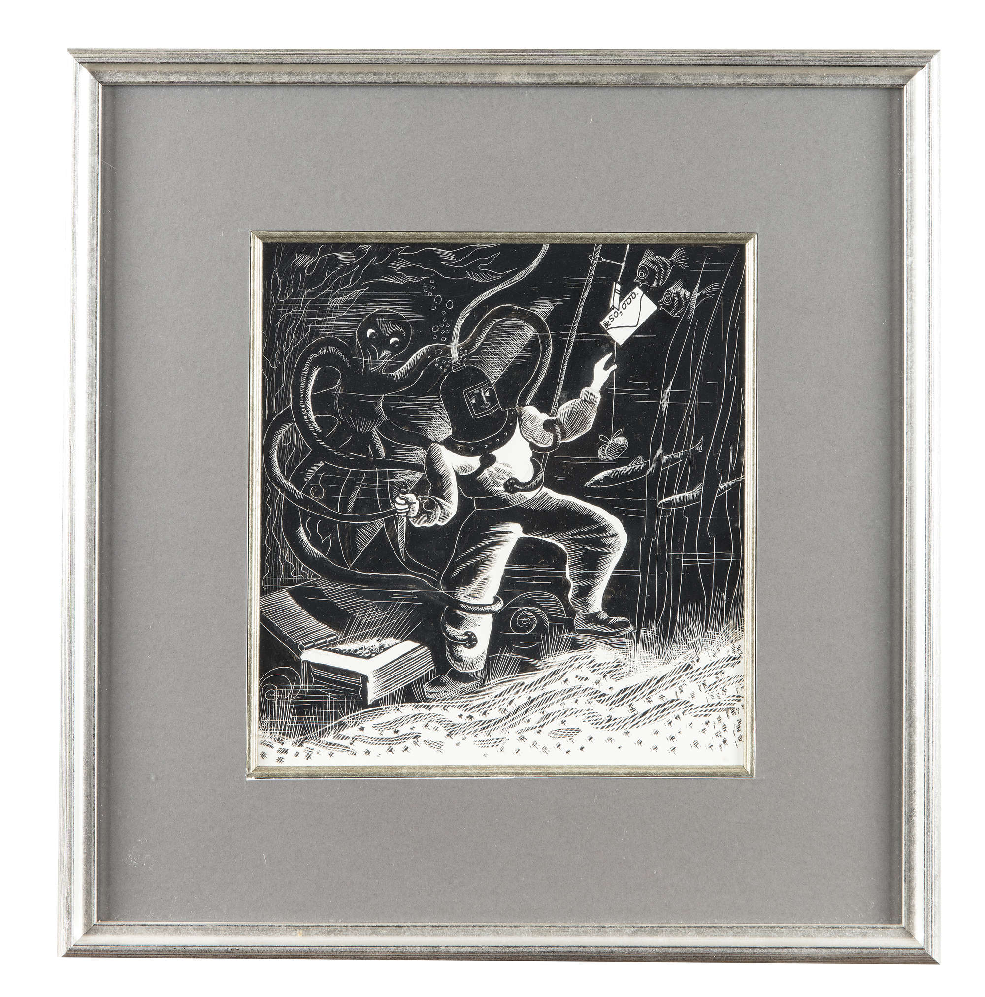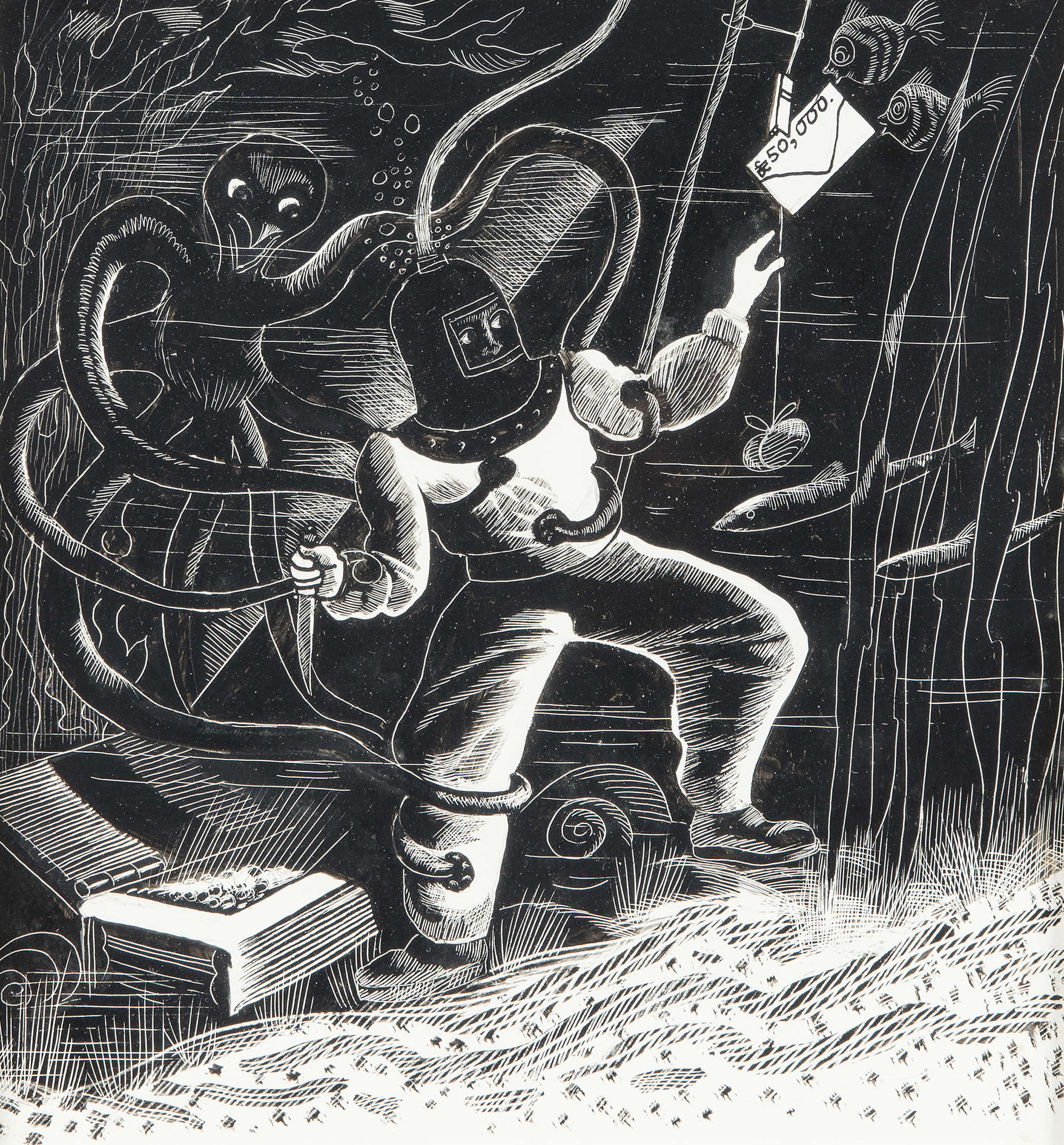Cecil ffrench Salkeld ARHA (1904-1969) The Diver - Whatever Your Walk in Life (1956) Pen and ink on scraper board, 22 x 22cm (8½ x 8½'') This work was part of a suite of designs for an...