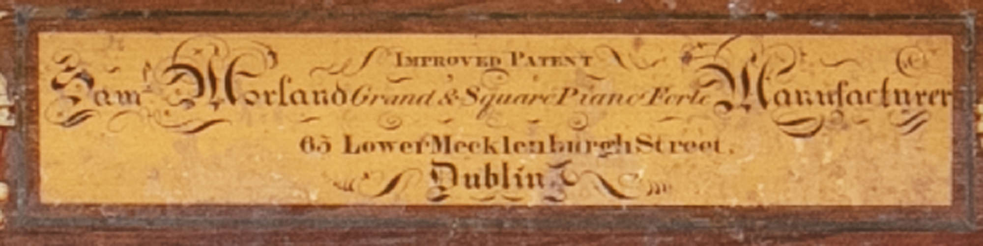 Piano maker Samuel Morland, whose workshops were in Mecklenburgh street Lower from 1809 to 1832, produced pianos and harpsichords in mahogany and rosewood. The National Museum has a dedicated 19th century music room in which some of Morlands creations can be seen today.