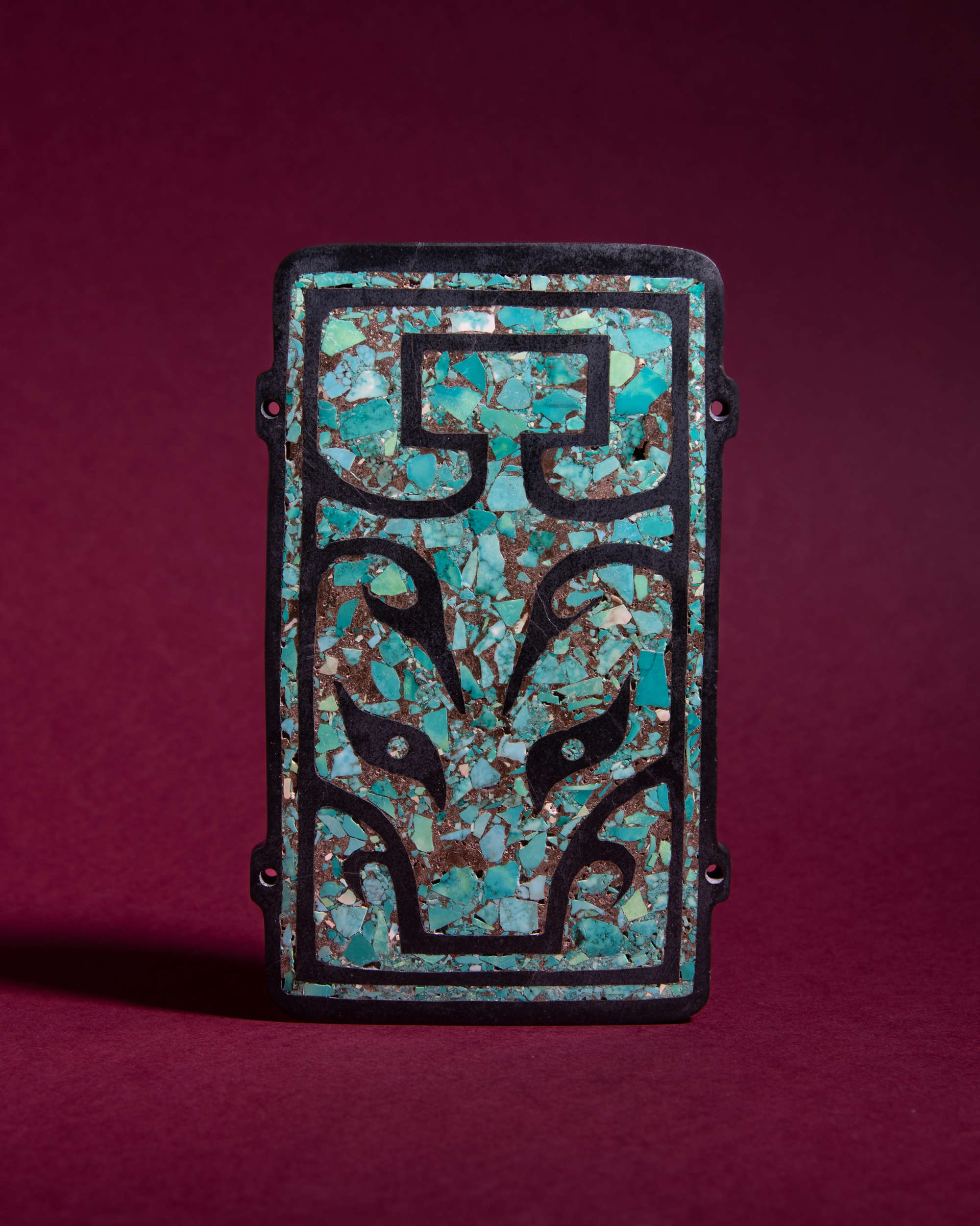 商风格墨玉嵌綠松石饕餮牌飾