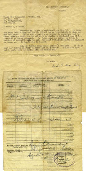 Internment Release: A printed certificate with manuscript details, signed and stamped, releasing Internee Thomas Mc Donagh Byrne from detention at No. 1 Internment Camp, The Curragh,...