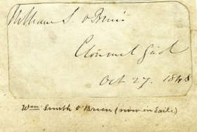 Smith O'Brien (William) 1803 - 1864. Lot 27 His autograph signature, on a slip laid down on card, while in Clonmel Gaol, dated Oct. 27, 1848. As a m/ss., w.a.f.
