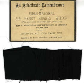 Memorial Card. A memorial card for Wilson, born at Edgeworthstown, Co. Longford, 5 May 1864, shot dead (on Michael Collins'' orders) in London 22 June,...