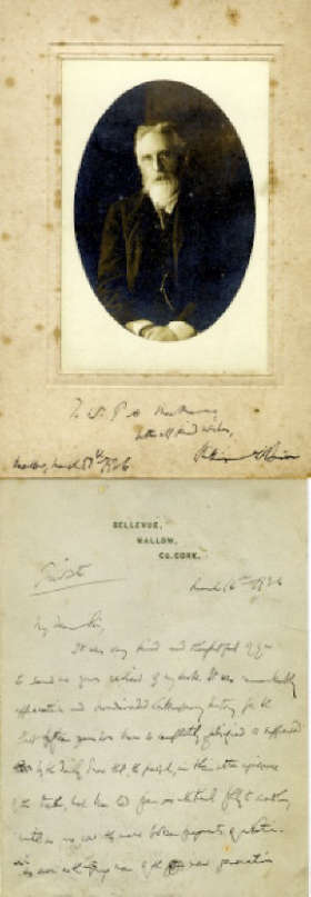O'Brien (William) A 2pp. A.L.s. from William O'Brien, Bellevue, Mallow, Co. Cork to Mr. Patrick Mac Manus, Editor of The Fermanagh Herald, dated March 16th, 1923; together with a signed &...