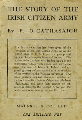 Sean O'Casey's History of the Citizen Army O'Cathasaigh (P.) [Sean O'Casey]. The Story of the Irish Citizen Army, sm. 8vo D. (Maunsel & Co.) 1919. FIRST EDN., hf. title, 72pp., orig. ptd....