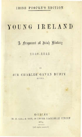 Gavan Duffy (Sir Chas.) Young Ireland. A Fragment of Irish History 1840 -1845, 8vo D. 1884. Irish Peoples Edition. Frontis, publication slip & notices' page, orig. cloth. V. good copy. (1)...