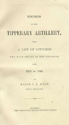 Rare Military History Co. Tipperary: Ryan (Major C.A.) Records of the Tipperary Artillery, with a List of Officers Who have served in the Regiment from 1793 to 1889, 8vo Clonmel (The Chronicle...