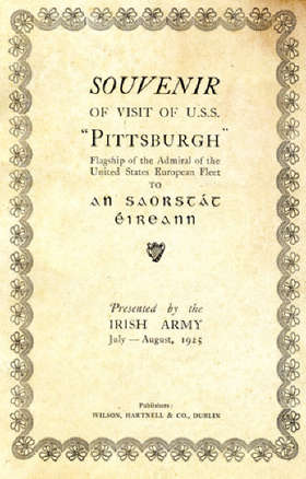 Irish Army: Booklet, Souvenir of Visit of U.S.S. "Pittsburgh" Flagship of the Admiral of the United States European Fleet to an Saorstat Eireann. Presented by the Irish Army July -August 1925....