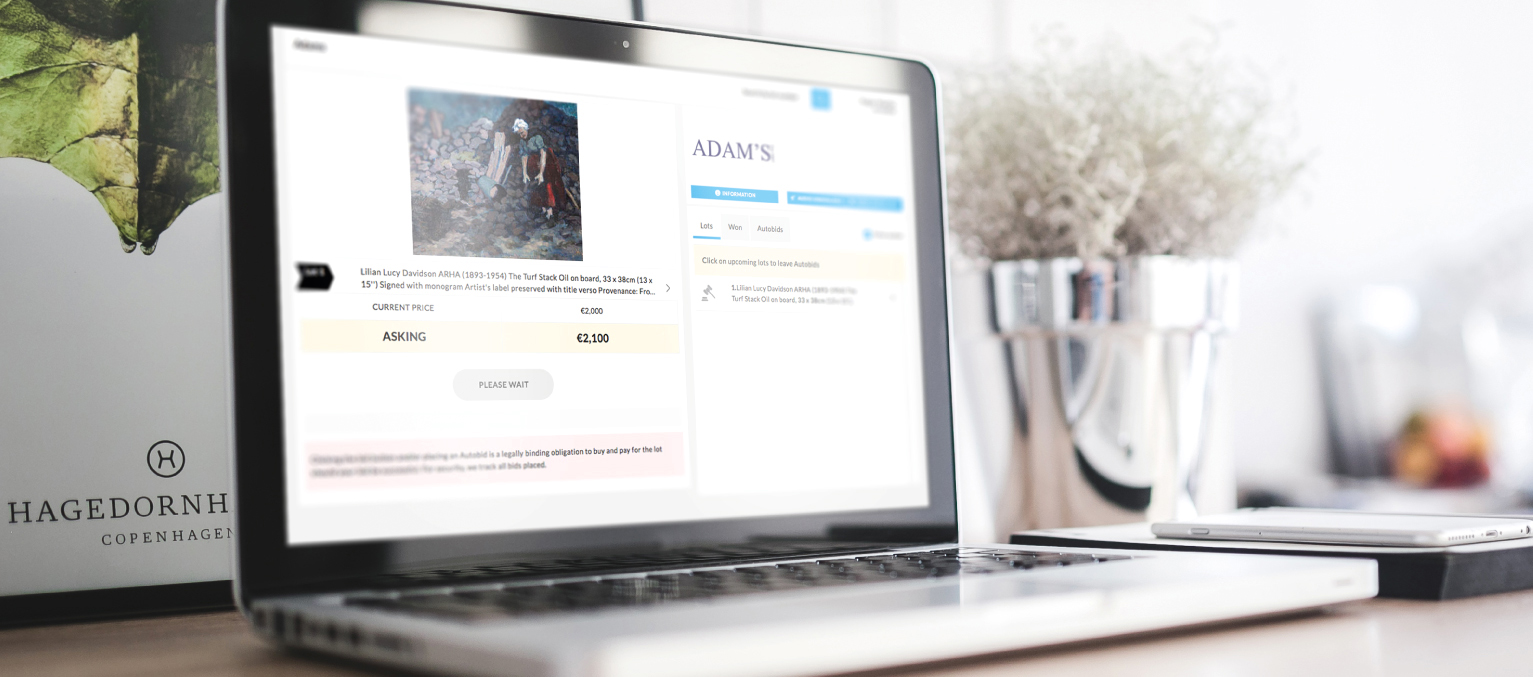 A timed online-only auction is automated and takes place solely online through out website www.adams.ie. The bidding for each lot is opened at a predetermined level set by the auctioneer, for a set period of time. During this period of open bidding you will be able to see the current highest bid on each lot. You may place a higher bid at the defined bidding increment you choose. Bidders are automatically informed by email if they are the winning bidder, or if they have been outbid by another competing bidder. At the end of the defined bidding period, if the highest bid offered meets the minimum price designated by the Auctioneer. (i.e the seller’s reserve price), the lot is sold. Bidding on all lots in a timed online auction will close at a specified time. If a bid is placed on a lot within a specific time before closing, the bidding may automatically be extended for a set period of time to faciliate the last minute bidding. The length of extended bidding is set by the Auctioneer prior to the opening of the auction.